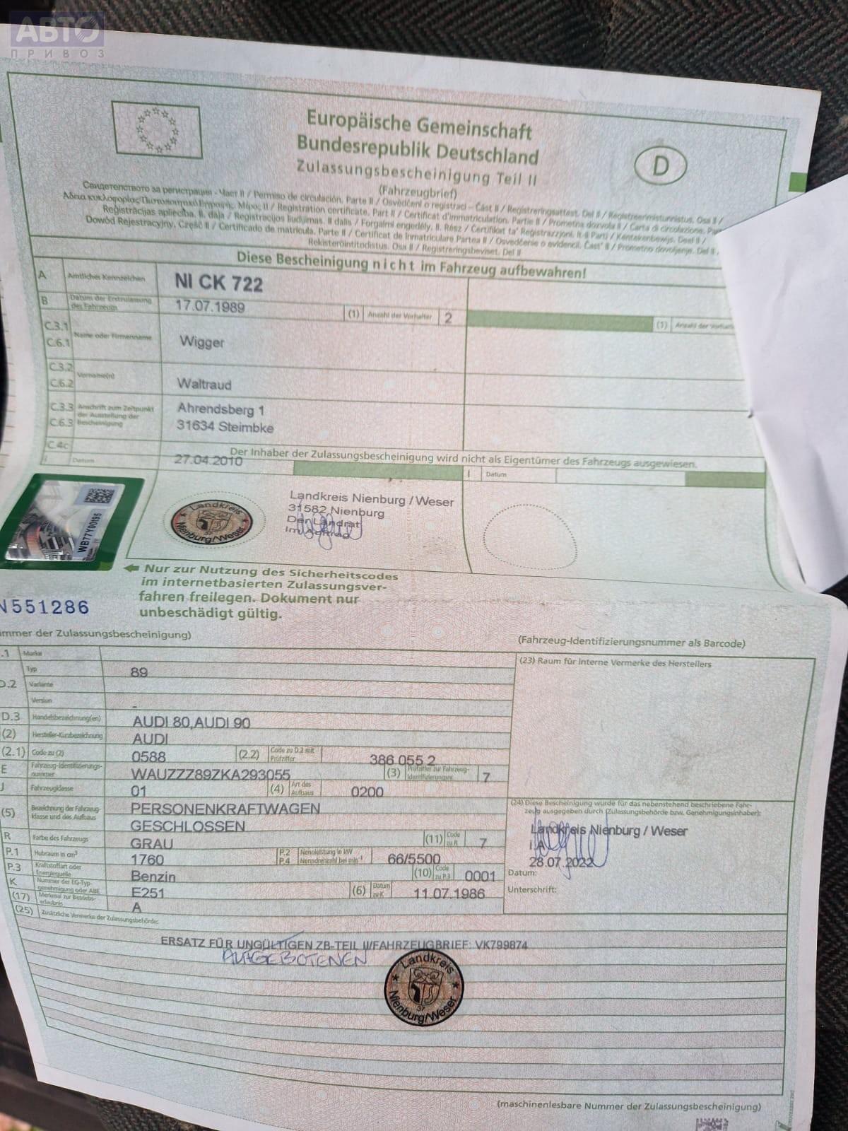 | Марка / Модель / Год: | Audi 80 B3 (1987-1992) 1989 |