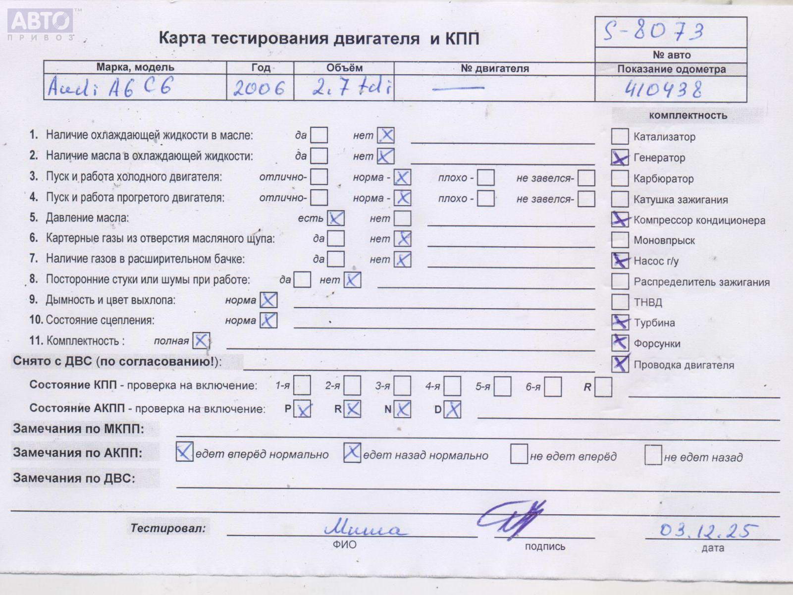 Хотите купить контракнтую запчасть Двигатель (ДВС)? У нас в наличии есть оригинальные автозапчасти бывшие в употреблении, хорошего качества по приемлемым ценам. Практически на все наши запчасти мы даем срок проверки (от 14 до 30 дней) (https://www.autopriwos.ru/return.html). На сайте Вы можете выбрать б/у запчасть по оригинальному номеру, моделе, марке автомобиля и маркировке. Каждая запчасть Двигатель (ДВС) для Audi A6 C6, 2006, купить б/у (54935975) проходит внешний осмотр на выявление неработоспособности для успешного решения проблемы вашего автомобиля.