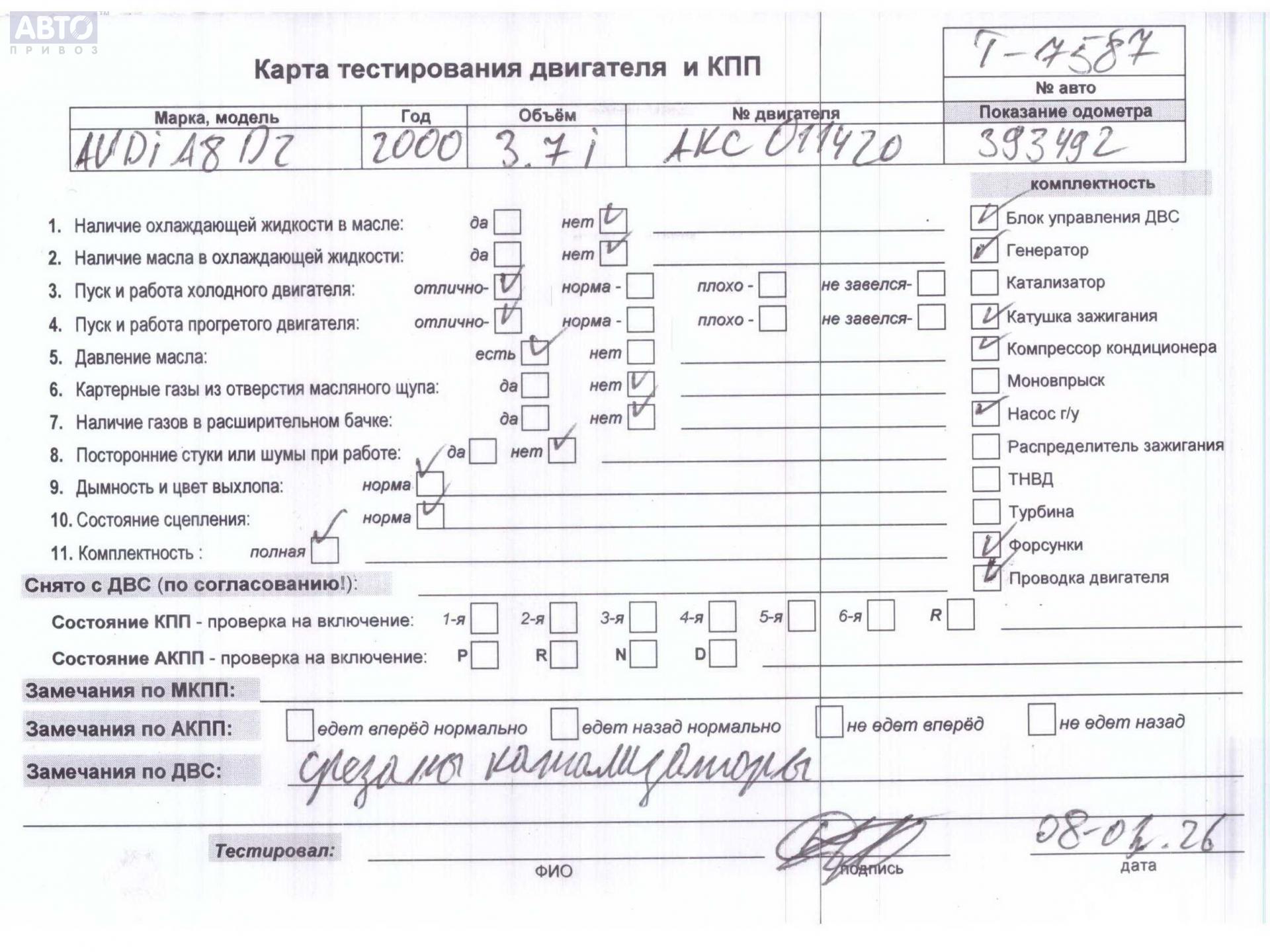 Хотите купить контракнтую запчасть Двигатель (ДВС)? У нас в наличии есть оригинальные автозапчасти бывшие в употреблении, хорошего качества по приемлемым ценам. Практически на все наши запчасти мы даем срок проверки (от 14 до 30 дней) (https://www.autopriwos.ru/return.html). На сайте Вы можете выбрать б/у запчасть по оригинальному номеру, моделе, марке автомобиля и маркировке. Каждая запчасть Двигатель (ДВС) для Audi A8 D2, 2000, купить б/у (55216513) проходит внешний осмотр на выявление неработоспособности для успешного решения проблемы вашего автомобиля.