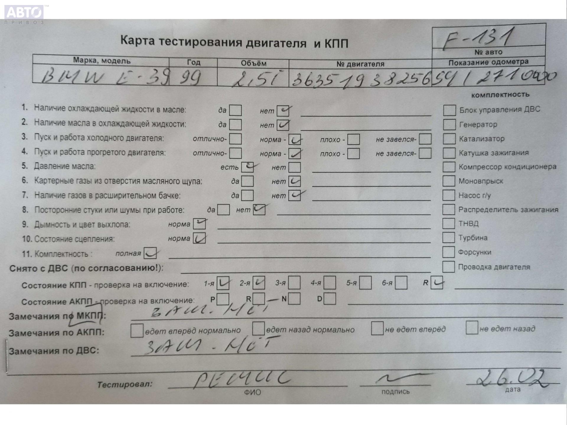 | Марка / Модель / Год: | BMW 5 E39 (1995-2003) 1999 |