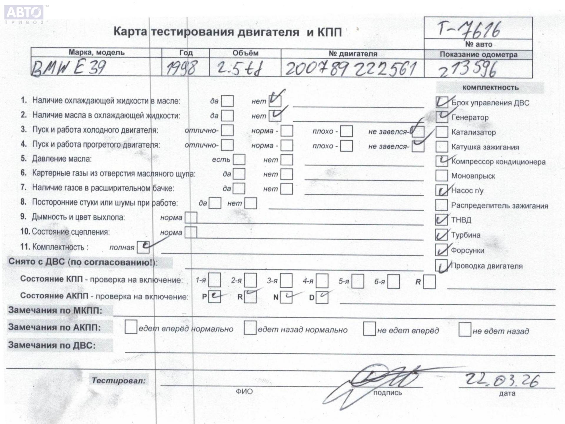 Хотите купить контракнтую запчасть Двигатель (ДВС)? У нас в наличии есть оригинальные автозапчасти бывшие в употреблении, хорошего качества по приемлемым ценам. Практически на все наши запчасти мы даем срок проверки (от 14 до 30 дней) (https://www.autopriwos.ru/return.html). На сайте Вы можете выбрать б/у запчасть по оригинальному номеру, моделе, марке автомобиля и маркировке. Каждая запчасть Двигатель (ДВС) для BMW 5 E39, 1998, купить б/у (55215901) проходит внешний осмотр на выявление неработоспособности для успешного решения проблемы вашего автомобиля.