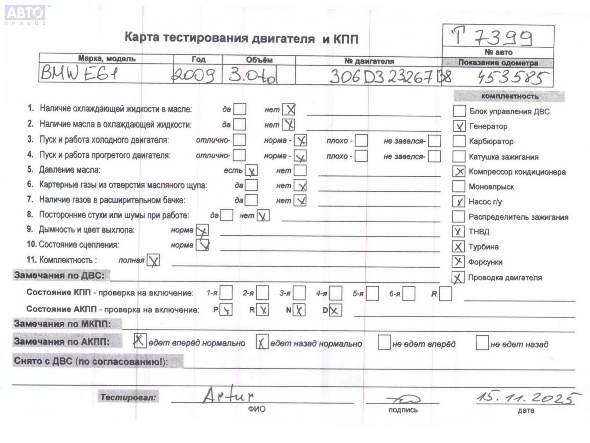 Купить с доставкой б/у 306D3, M57TU2D30-UL, Двигатель (ДВС) для BMW 5 E60/E61, 2009, (53619563) с разборки России.