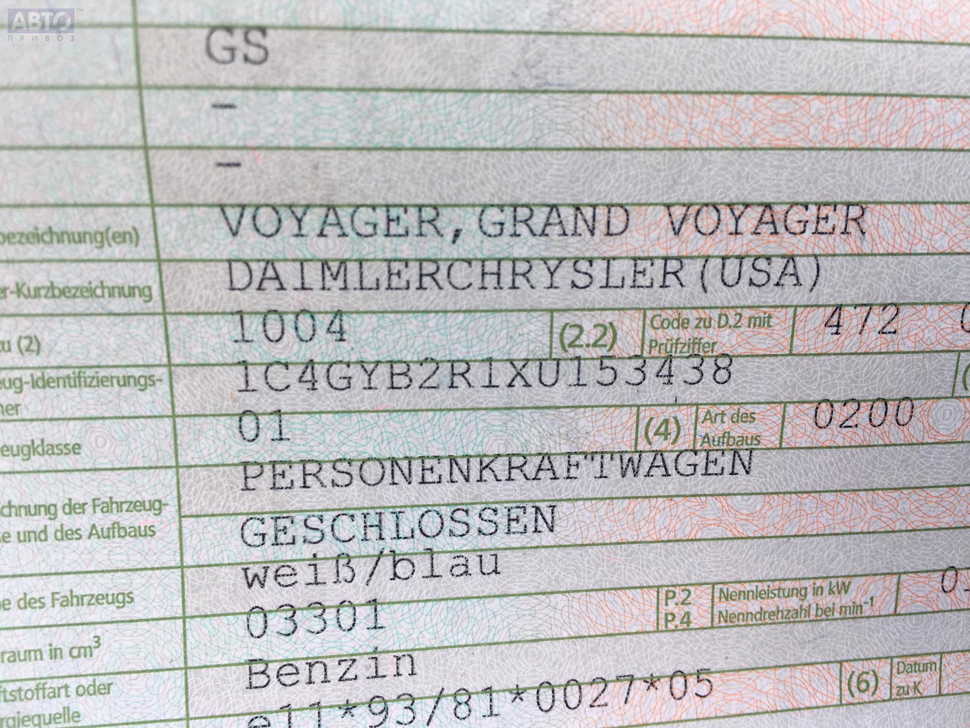 | Марка / Модель / Год: | Chrysler Voyager (1996-2000) 1999 |