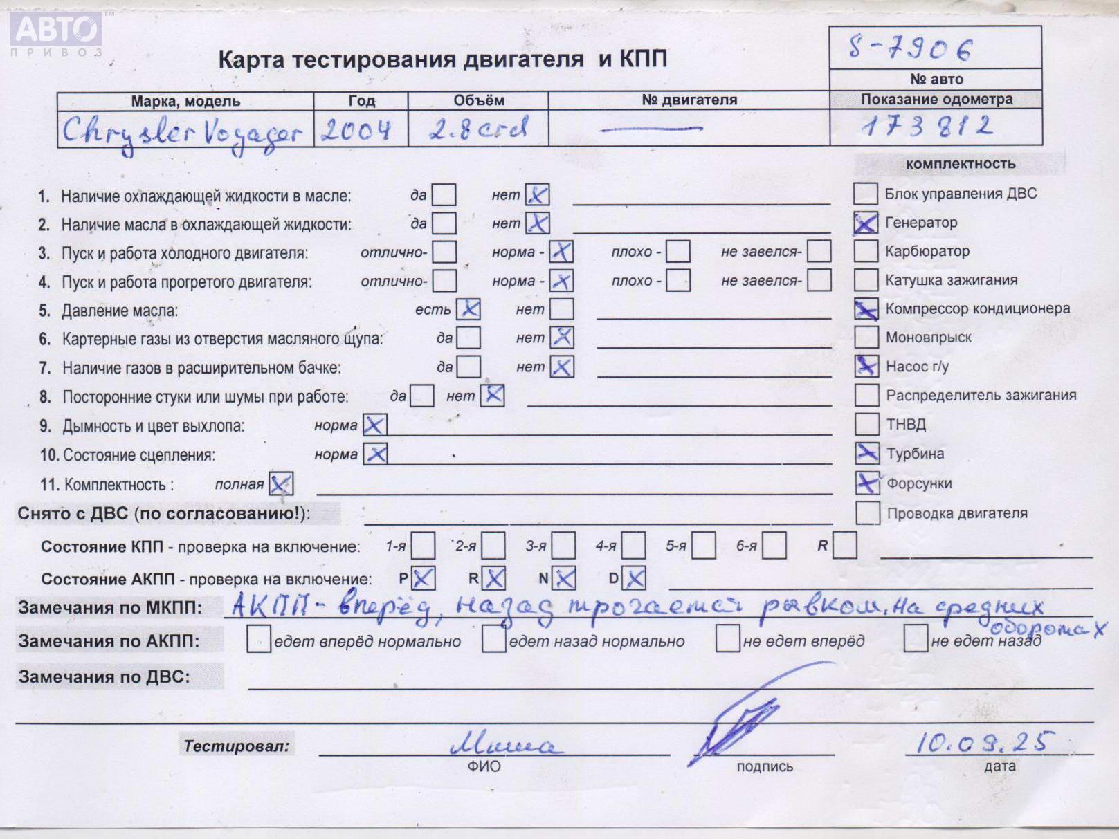 | Марка / Модель / Год: | Chrysler Voyager (2001-2007) 2004 |