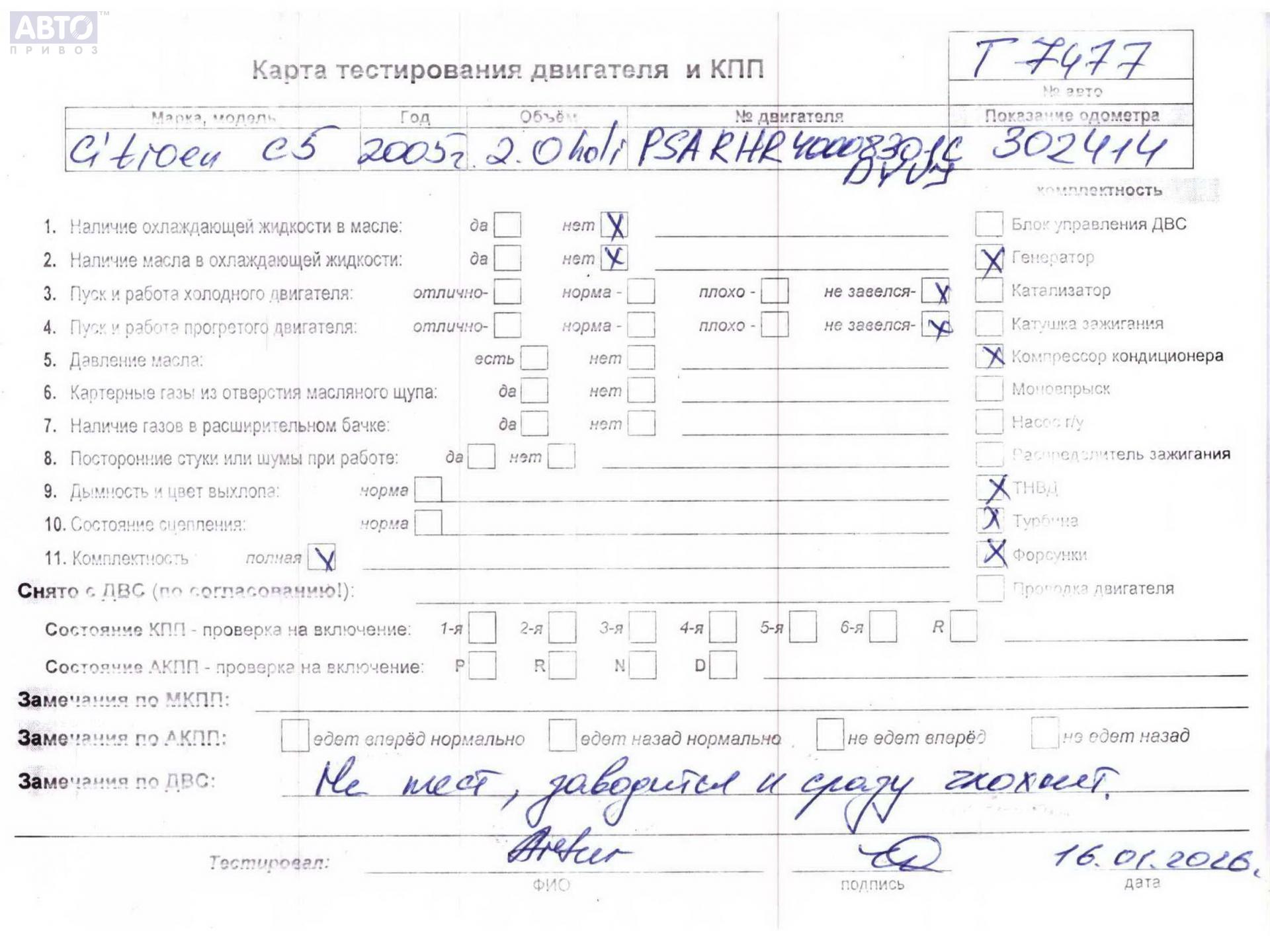 Хотите купить контракнтую запчасть Двигатель (ДВС)? У нас в наличии есть оригинальные автозапчасти бывшие в употреблении, хорошего качества по приемлемым ценам. Практически на все наши запчасти мы даем срок проверки (от 14 до 30 дней) (https://www.autopriwos.ru/return.html). На сайте Вы можете выбрать б/у запчасть по оригинальному номеру, моделе, марке автомобиля и маркировке. Каждая запчасть Двигатель (ДВС) для Citroen C5, 2005, купить б/у (55135103) проходит внешний осмотр на выявление неработоспособности для успешного решения проблемы вашего автомобиля.
