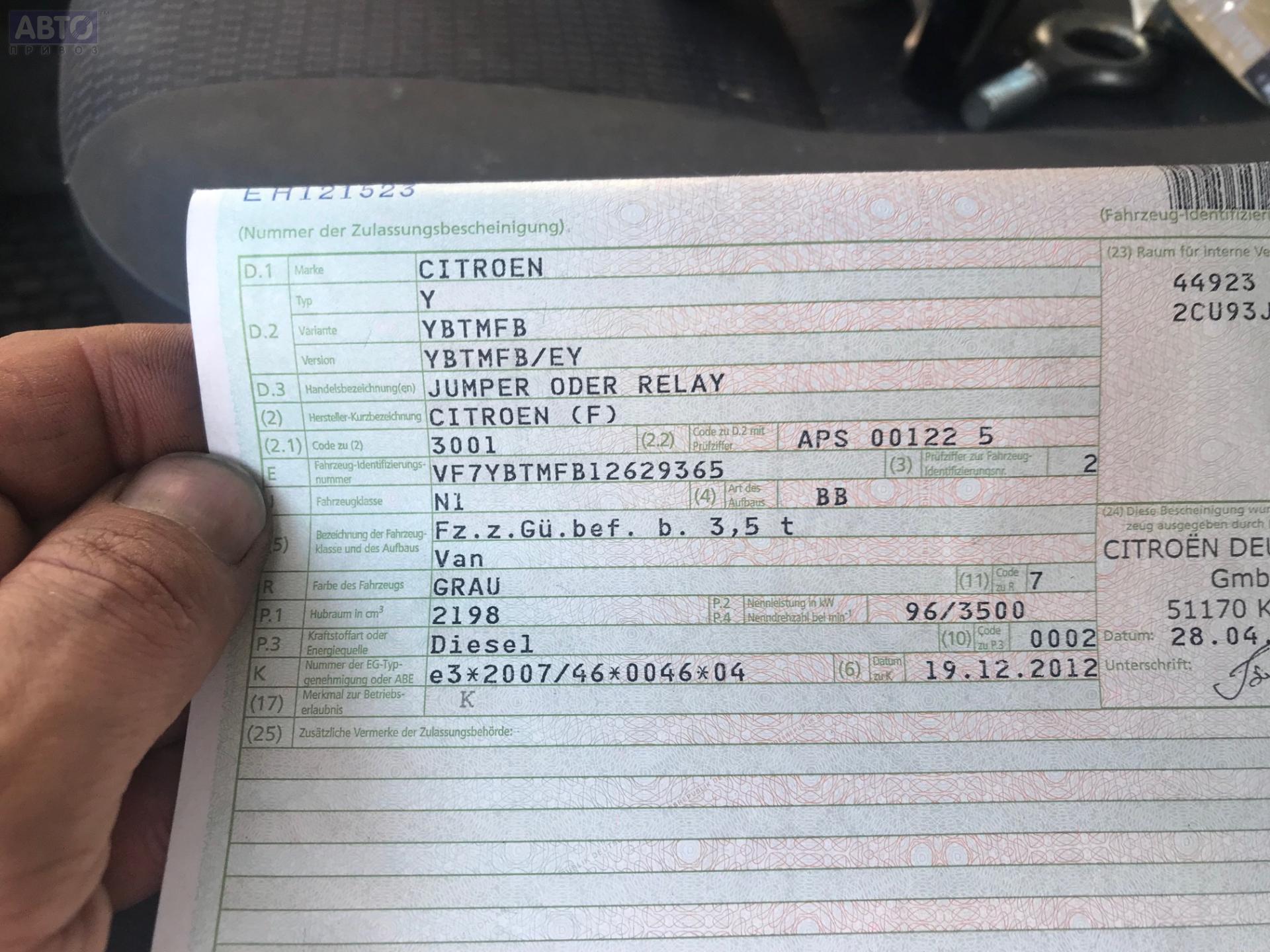 | Марка / Модель / Год: | Citroen Jumper (2006-2014) 2013 |