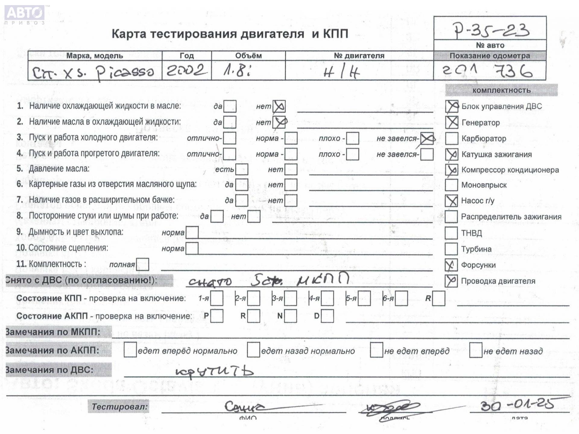 | Марка / Модель / Год: | Citroen Xsara Picasso 2002 |