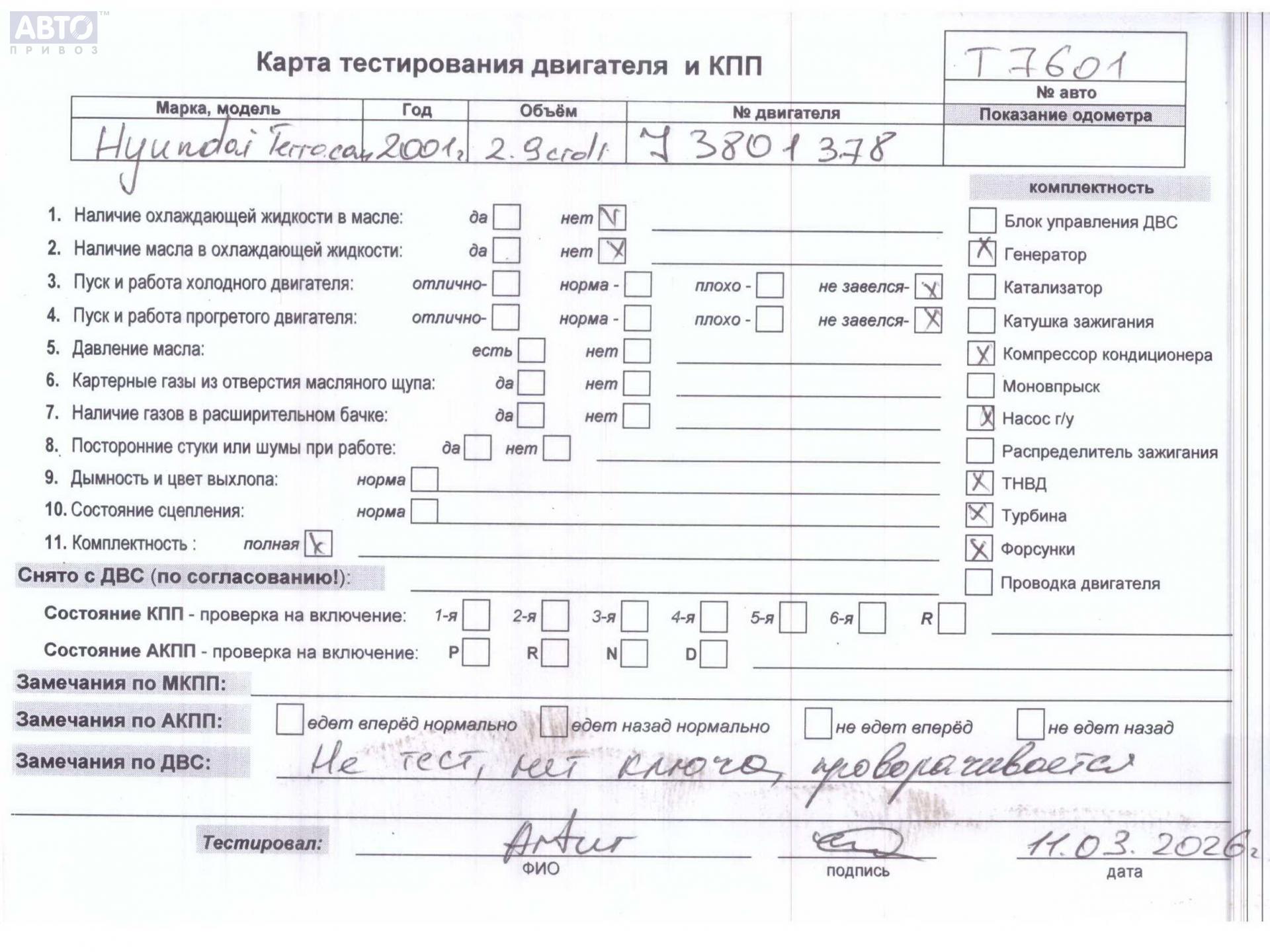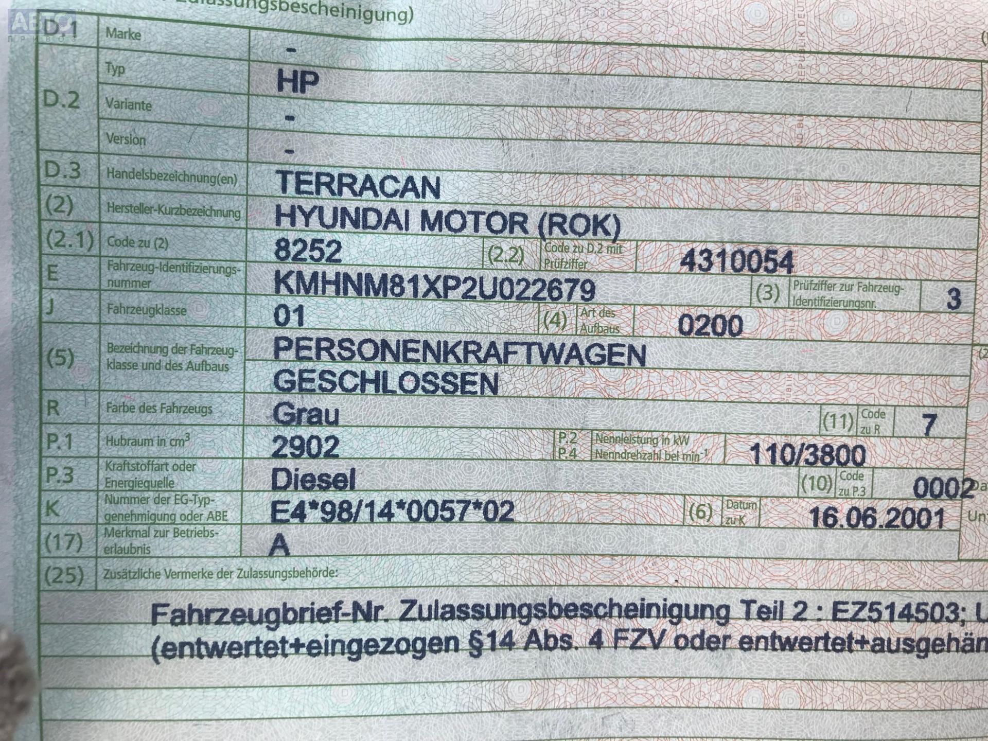 | Марка / Модель / Год: | Hyundai Terracan 2001 |