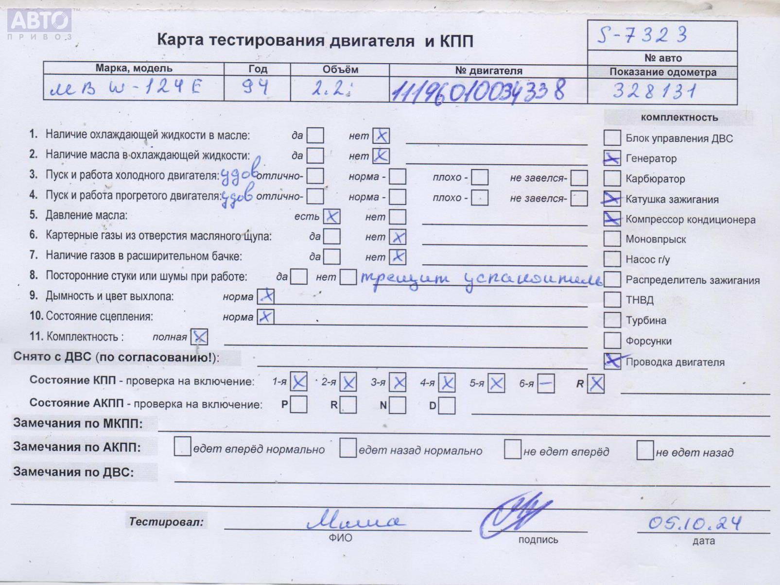 Двигатель (ДВС); Mercedes; W124 (1985-1995); 1987; 2л; Бензин; K; Мех.; Б/Н (цена без навесного); 102922, M102.922, M102; VIN WDB1240201A640017;