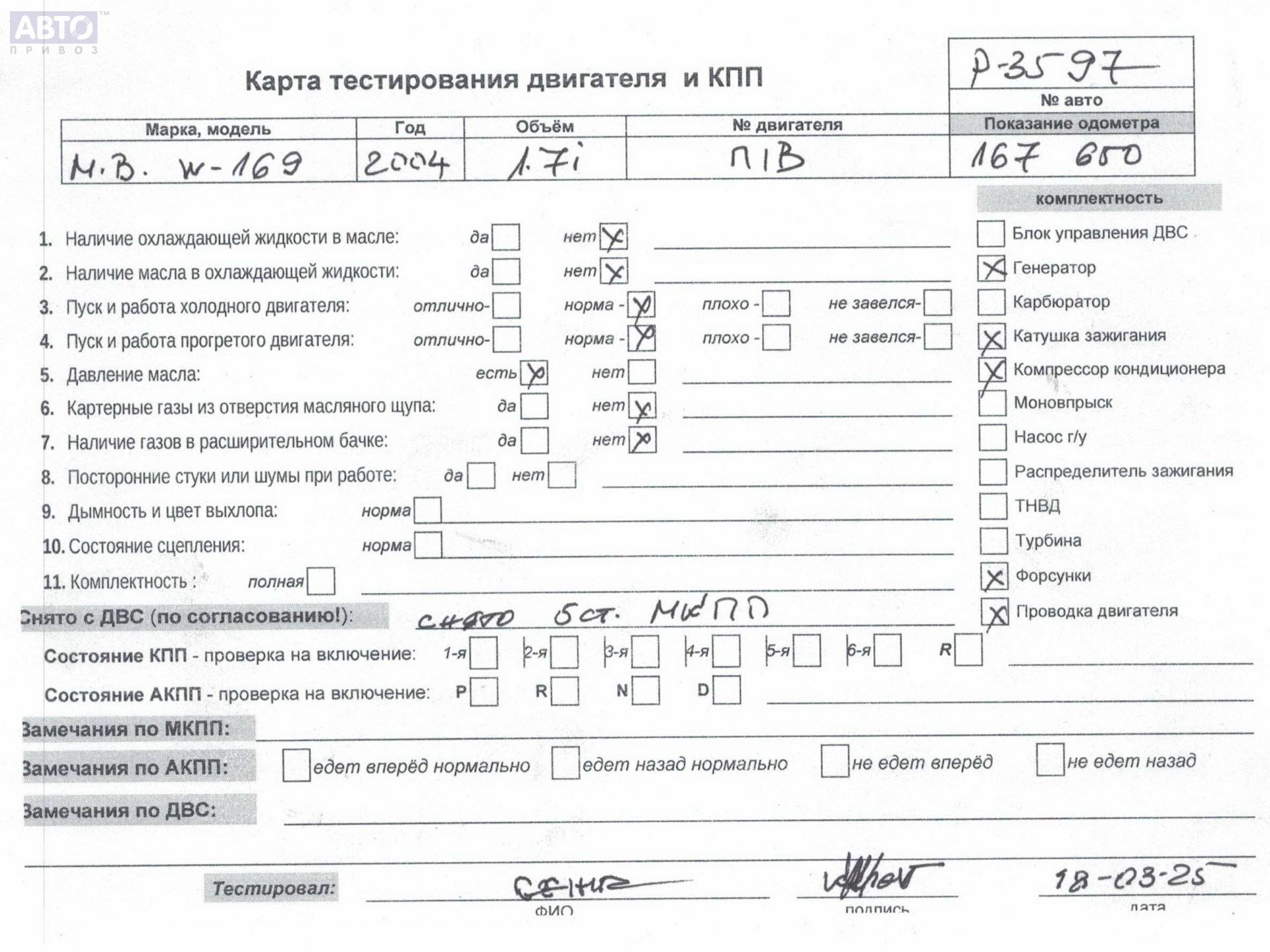 | Марка / Модель / Год: | Mercedes A-Class W169 (2004-2012) 2004 |