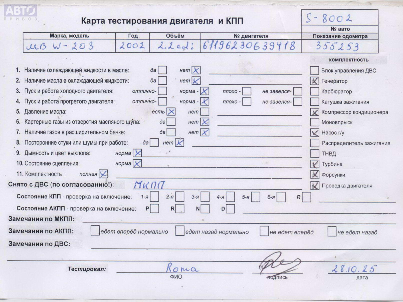 | Марка / Модель / Год: | Mercedes C-Class W203 (2000-2006) 2002 |