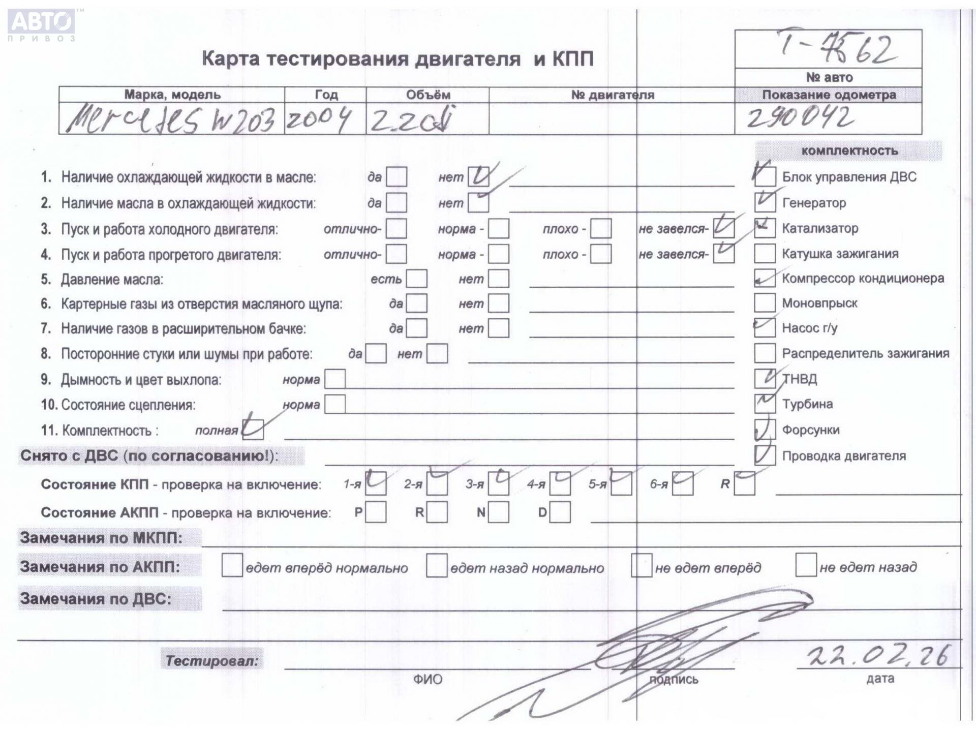 | Марка / Модель / Год: | Mercedes C-Class W203 (2000-2006) 2004 |