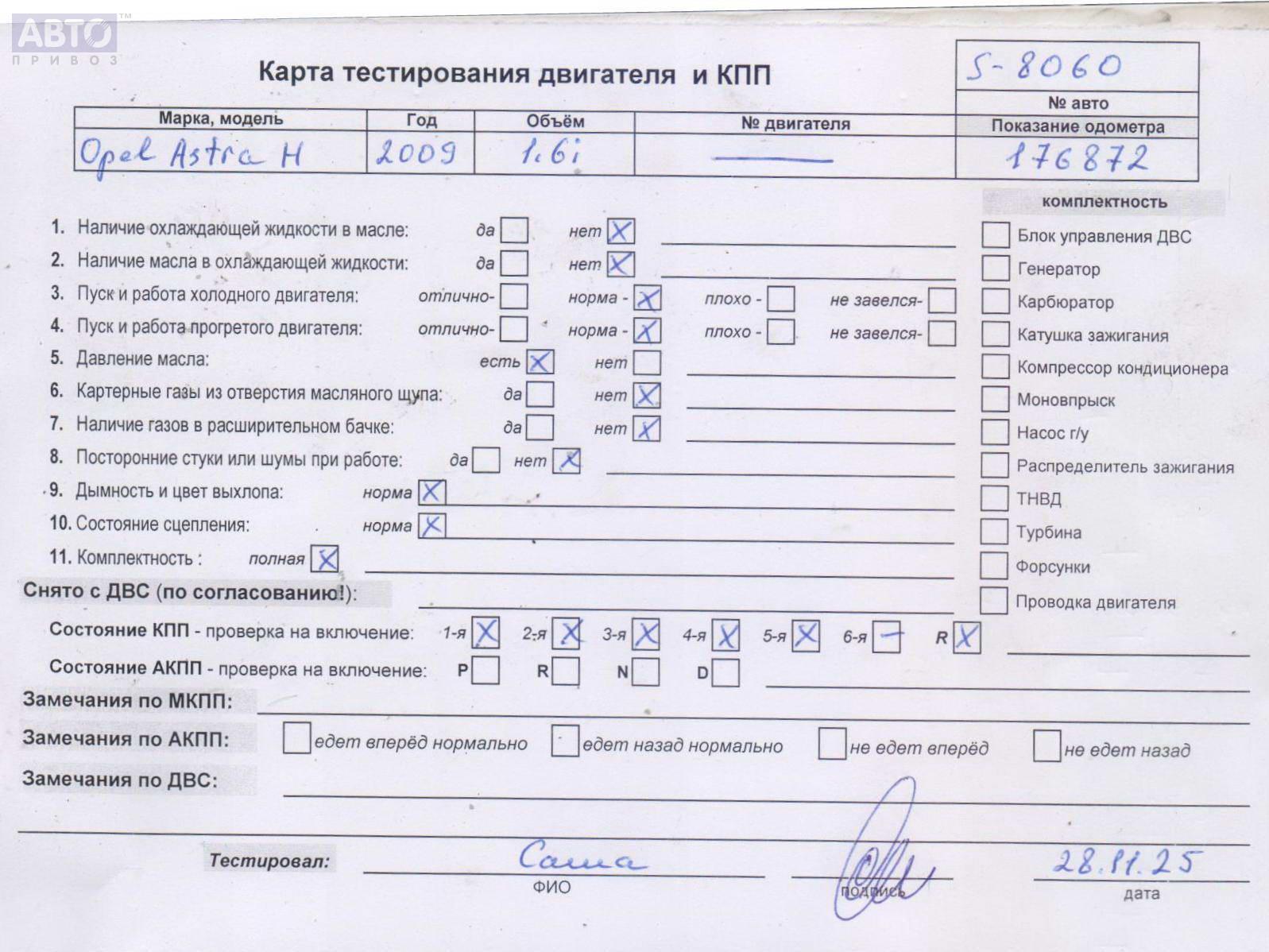 | Марка / Модель / Год: | Opel Astra H (2004-2009) 2009 |