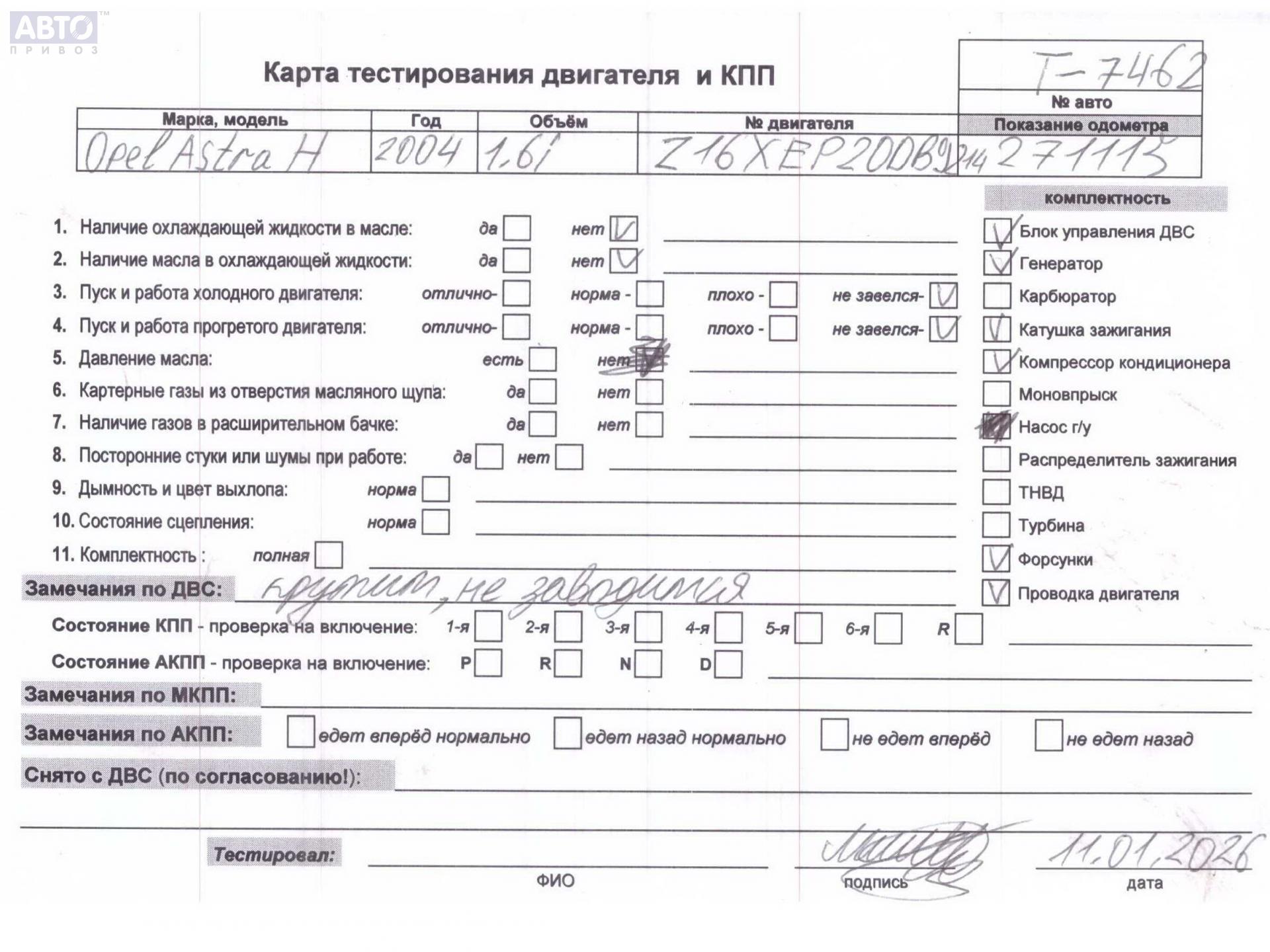 | Марка / Модель / Год: | Opel Astra H (2004-2009) 2004 |
