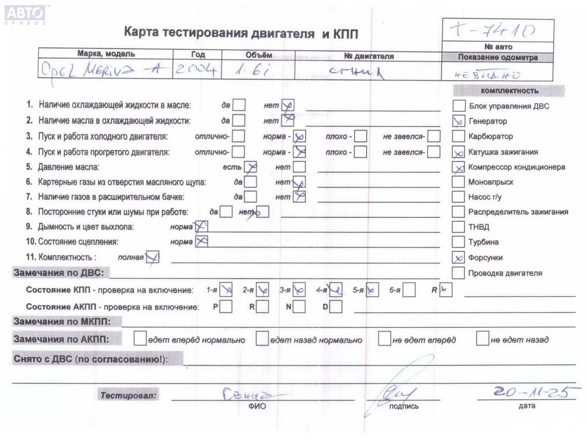 | Марка / Модель / Год: | Opel Meriva A (2003-2010) 2004 |