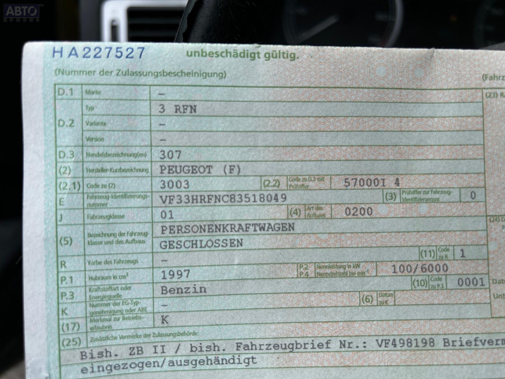 | Марка / Модель / Год: | Peugeot 307 2004 |