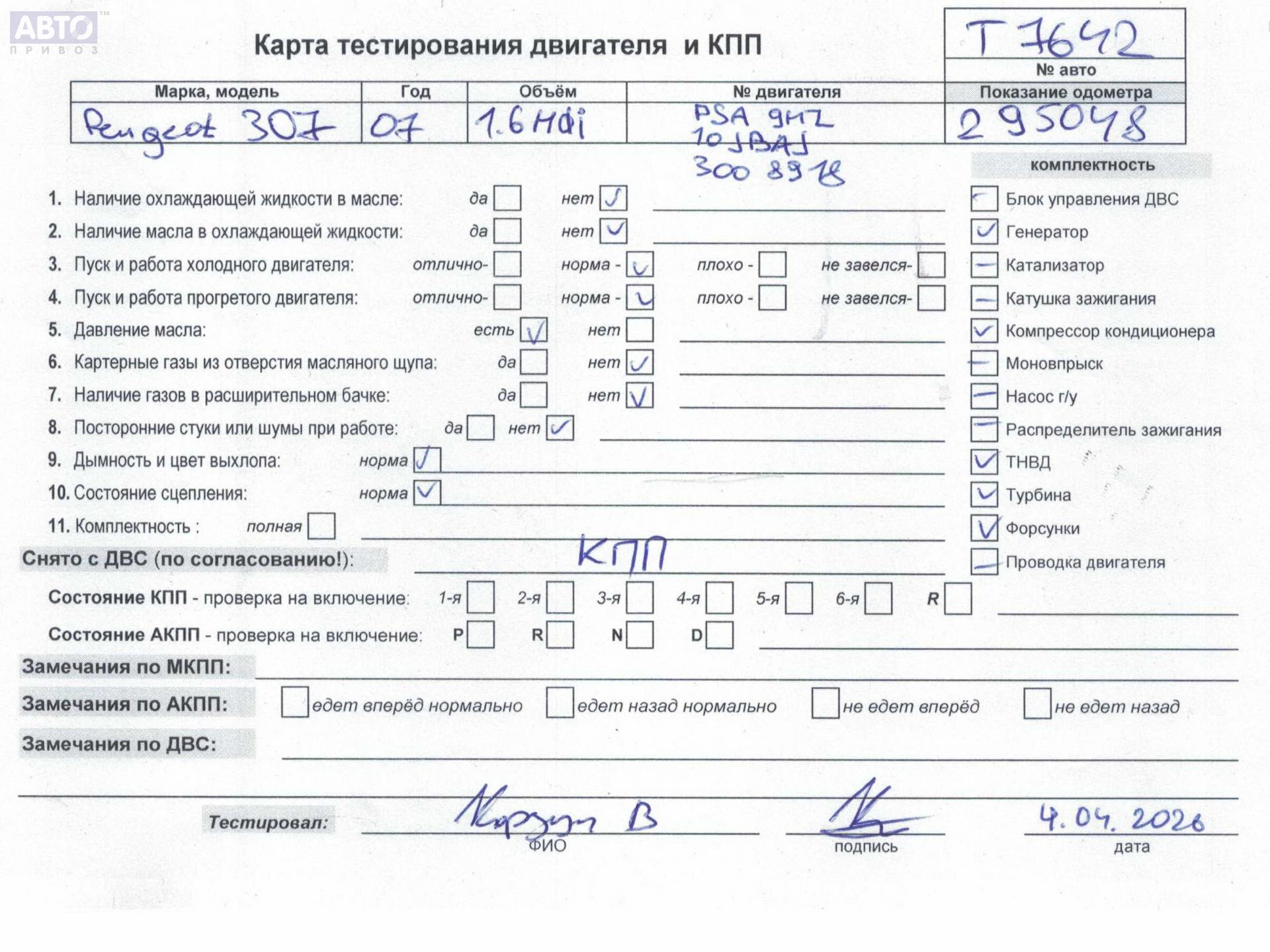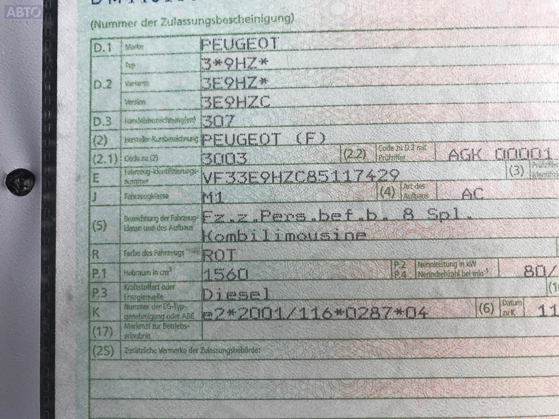 | Марка / Модель / Год: | Peugeot 307 2007 |