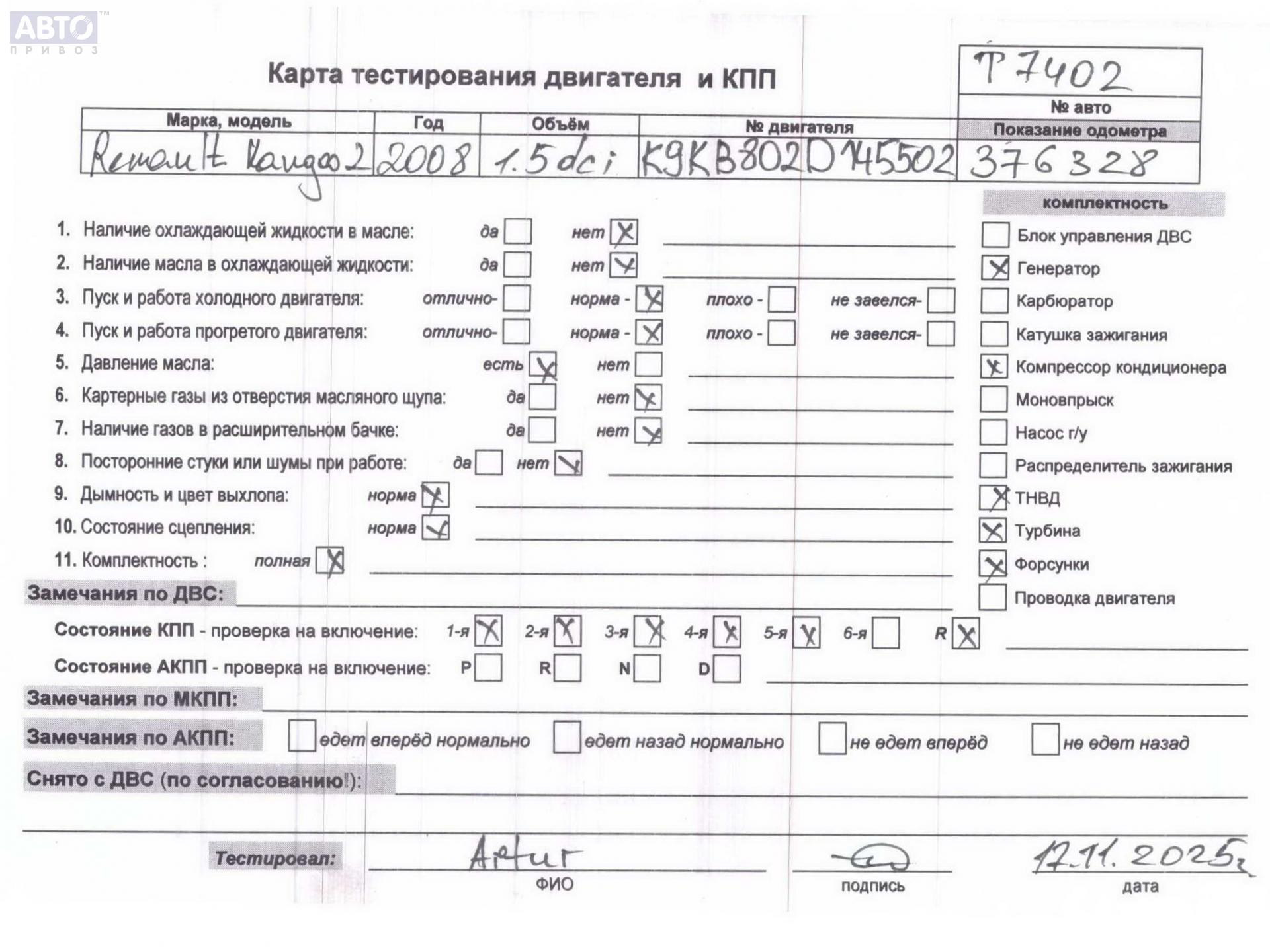 Хотите купить контракнтую запчасть Двигатель (ДВС)? У нас в наличии есть оригинальные автозапчасти бывшие в употреблении, хорошего качества по приемлемым ценам. Практически на все наши запчасти мы даем срок проверки (от 14 до 30 дней) (https://www.autopriwos.ru/return.html). На сайте Вы можете выбрать б/у запчасть по оригинальному номеру, моделе, марке автомобиля и маркировке. Каждая запчасть Двигатель (ДВС) для Renault Kangoo II, 2008, купить б/у (53619622) проходит внешний осмотр на выявление неработоспособности для успешного решения проблемы вашего автомобиля.