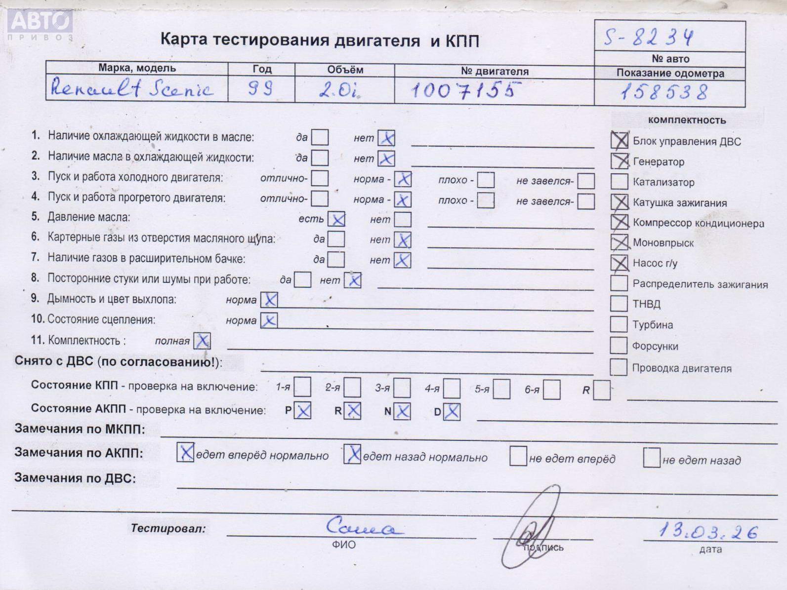 Хотите купить контракнтую запчасть Двигатель (ДВС)? У нас в наличии есть оригинальные автозапчасти бывшие в употреблении, хорошего качества по приемлемым ценам. Практически на все наши запчасти мы даем срок проверки (от 14 до 30 дней) (https://www.autopriwos.ru/return.html). На сайте Вы можете выбрать б/у запчасть по оригинальному номеру, моделе, марке автомобиля и маркировке. Каждая запчасть Двигатель (ДВС) для Renault Scenic I, 1998, купить б/у (54875379) проходит внешний осмотр на выявление неработоспособности для успешного решения проблемы вашего автомобиля.