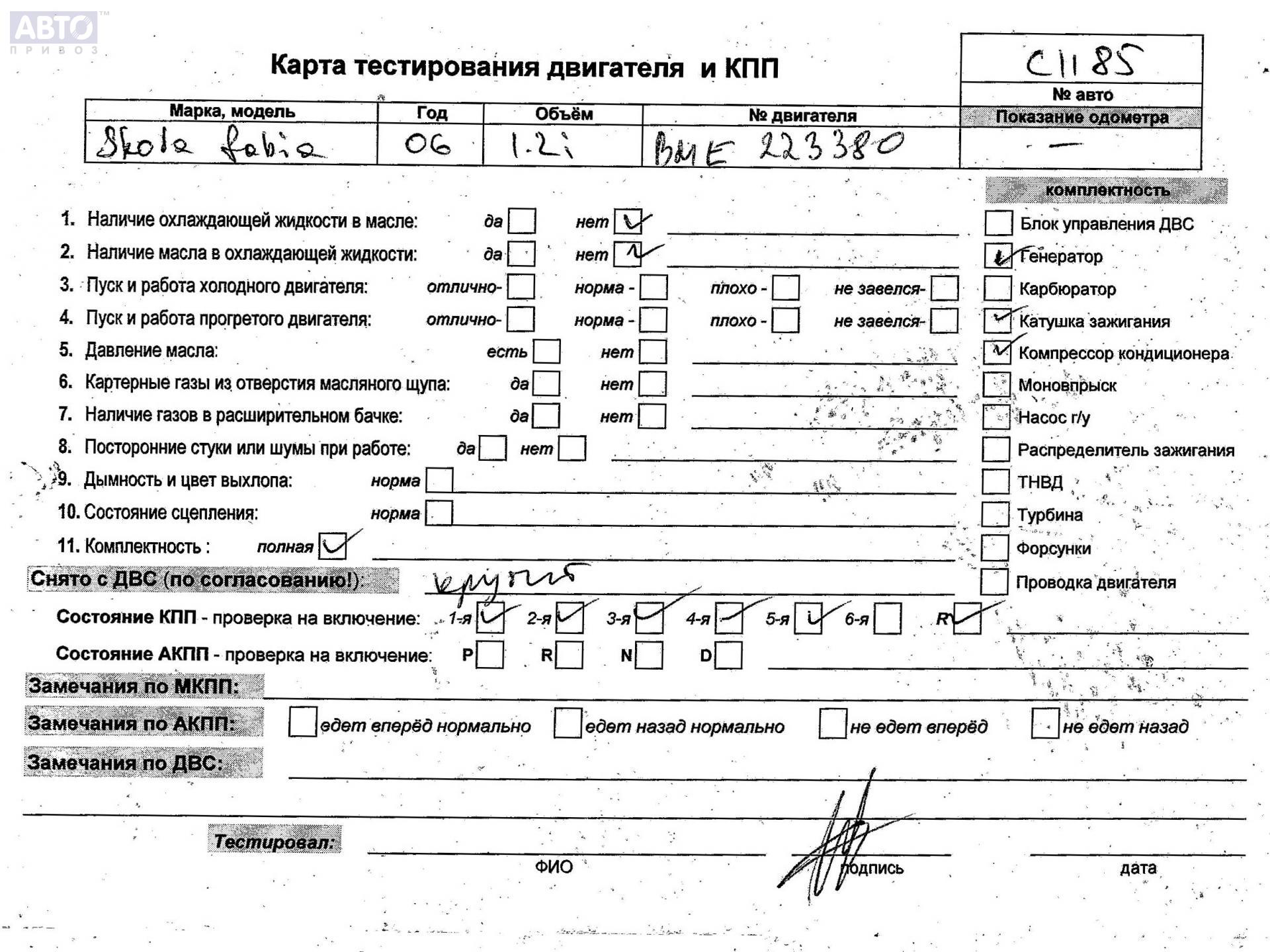 | Марка / Модель / Год: | Skoda Fabia mk1 (6Y) 2006 |