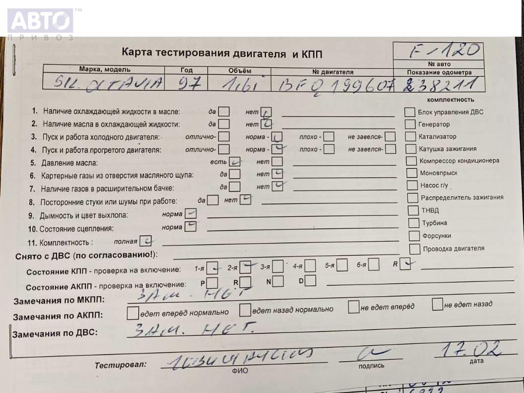 Хотите купить контракнтую запчасть Двигатель (ДВС)? У нас в наличии есть оригинальные автозапчасти бывшие в употреблении, хорошего качества по приемлемым ценам. Практически на все наши запчасти мы даем срок проверки (от 14 до 30 дней) (https://www.autopriwos.ru/return.html). На сайте Вы можете выбрать б/у запчасть по оригинальному номеру, моделе, марке автомобиля и маркировке. Каждая запчасть Двигатель (ДВС) для Skoda Octavia mk1 (A4 1U) 1996-2010, 2007, купить б/у (54706855) проходит внешний осмотр на выявление неработоспособности для успешного решения проблемы вашего автомобиля.