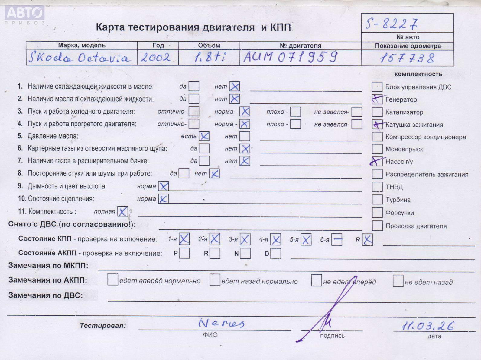 | Автомобиль / VIN: | S8227 TMBGL21U632669532 |
