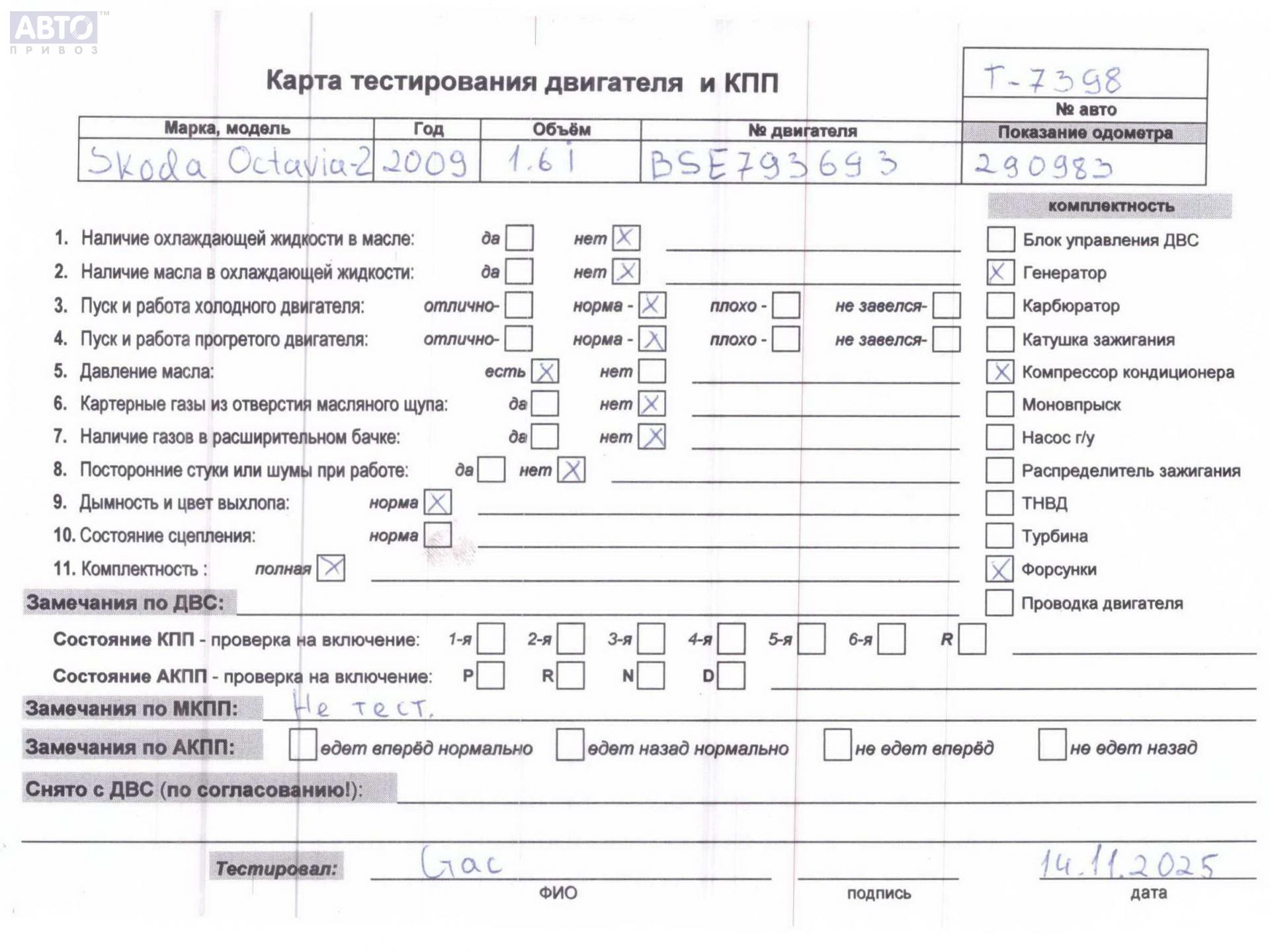 | Автомобиль / VIN: | T7398 TMBCA61Z298009680 |