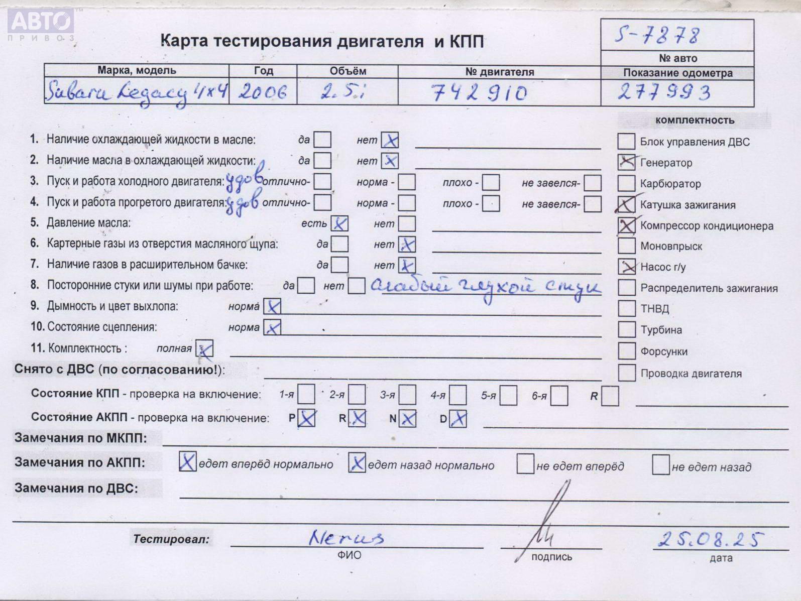 | Марка / Модель / Год: | Subaru Legacy 2006 |