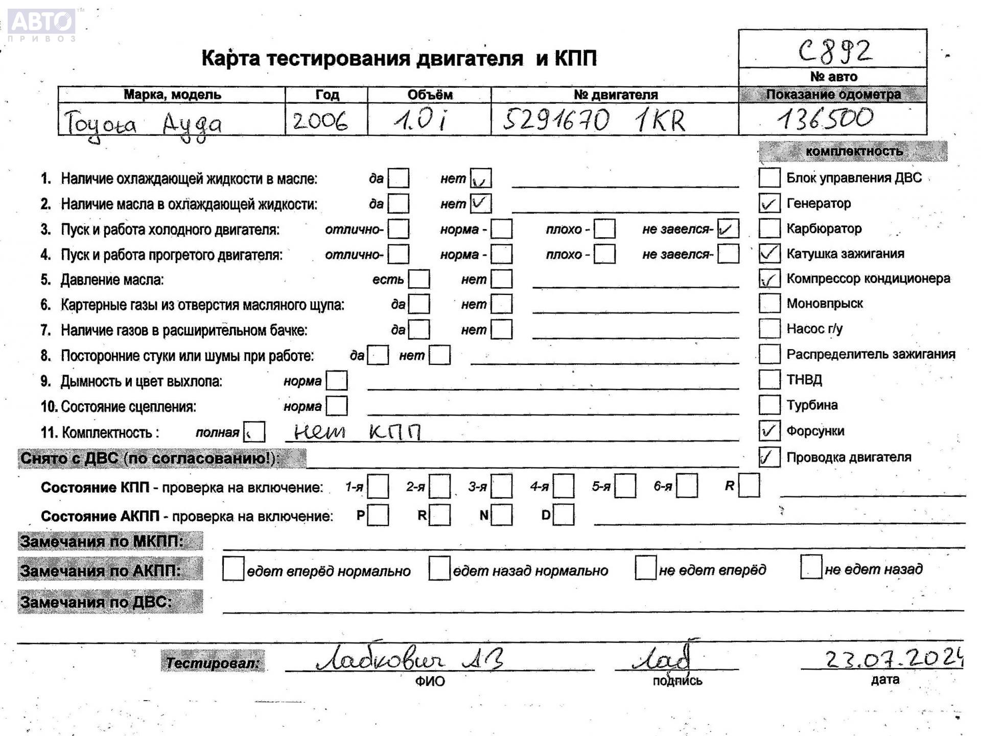 | Марка / Модель / Год: | Toyota Aygo 2006 |