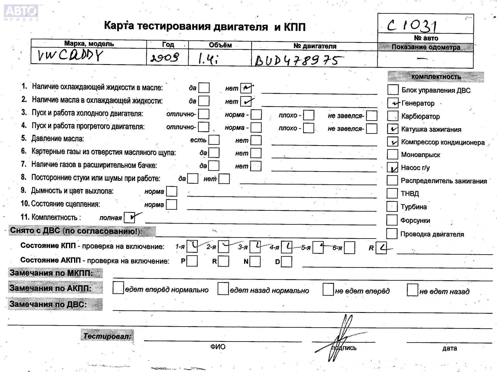 Купить с доставкой б/у BUD, Двигатель (ДВС) на разборку для Volkswagen Caddy, 2009, (55050368) с разборки России.