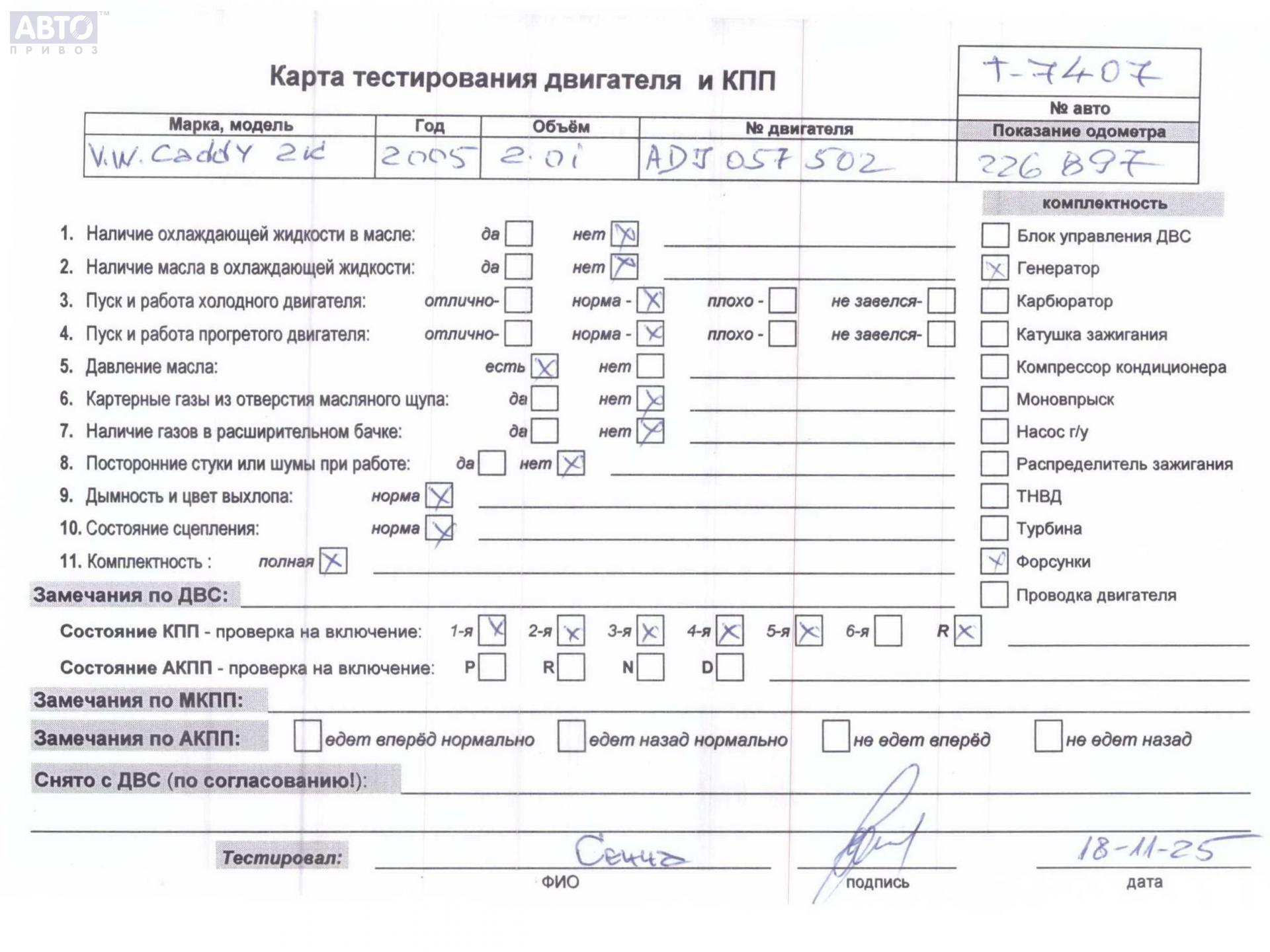 Хотите купить контракнтую запчасть Двигатель (ДВС)? У нас в наличии есть оригинальные автозапчасти бывшие в употреблении, хорошего качества по приемлемым ценам. Практически на все наши запчасти мы даем срок проверки (от 14 до 30 дней) (https://www.autopriwos.ru/return.html). На сайте Вы можете выбрать б/у запчасть по оригинальному номеру, моделе, марке автомобиля и маркировке. Каждая запчасть Двигатель (ДВС) для Volkswagen Caddy, 2005, купить б/у (52885910) проходит внешний осмотр на выявление неработоспособности для успешного решения проблемы вашего автомобиля.