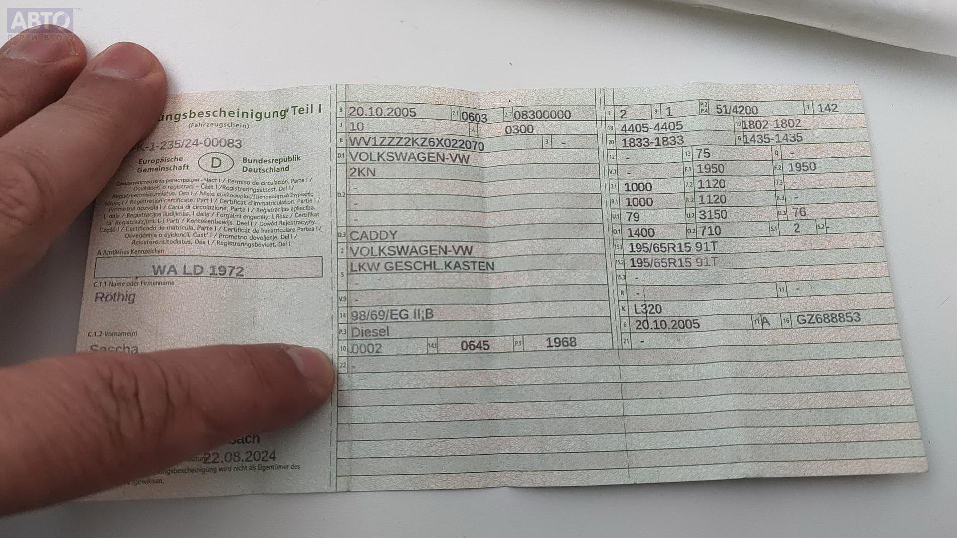 | Марка / Модель / Год: | Volkswagen Caddy (2004-2010) 2005 |