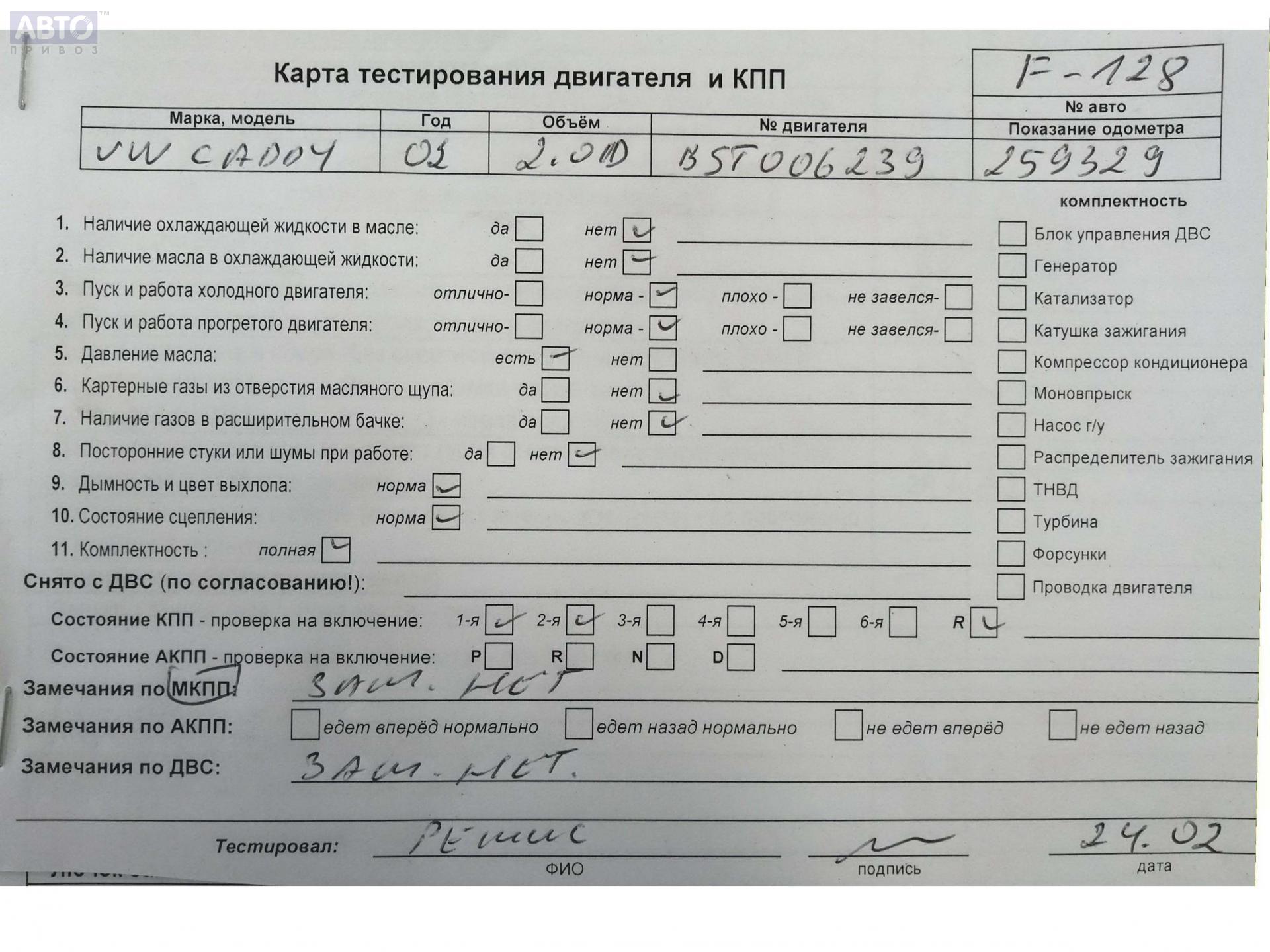 | Автомобиль / VIN: | F0128 WV1ZZZ2KZ6X022070 |