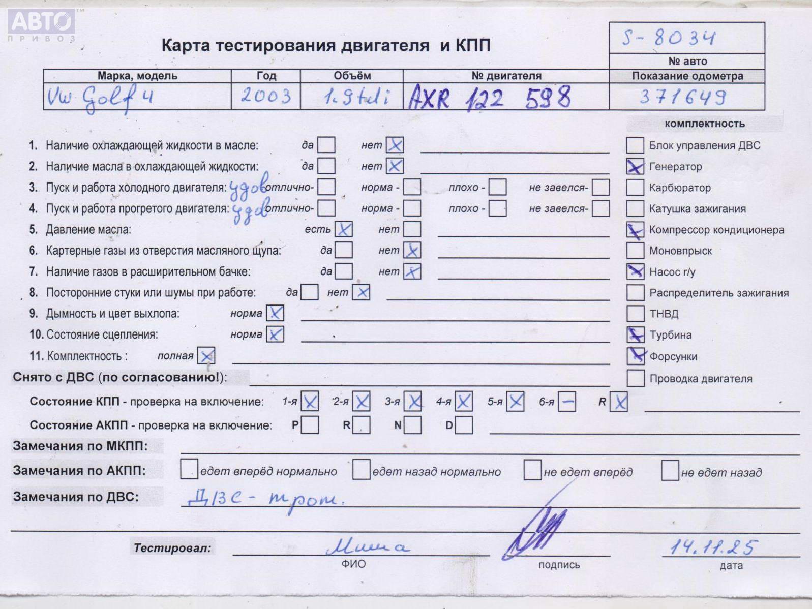 Хотите купить контракнтую запчасть Двигатель (ДВС)? У нас в наличии есть оригинальные автозапчасти бывшие в употреблении, хорошего качества по приемлемым ценам. Практически на все наши запчасти мы даем срок проверки (от 14 до 30 дней) (https://www.autopriwos.ru/return.html). На сайте Вы можете выбрать б/у запчасть по оригинальному номеру, моделе, марке автомобиля и маркировке. Каждая запчасть Двигатель (ДВС) для Volkswagen Golf-4, 2003, купить б/у (54873959) проходит внешний осмотр на выявление неработоспособности для успешного решения проблемы вашего автомобиля.