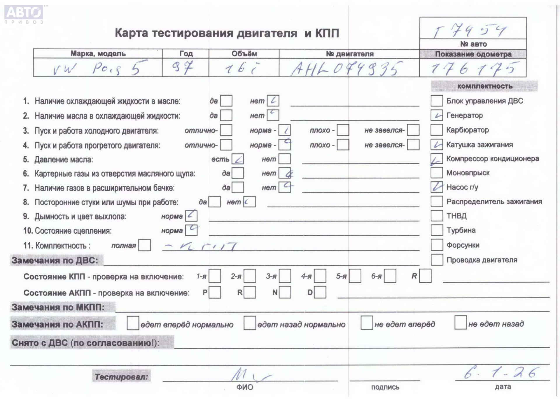 Хотите купить контракнтую запчасть Двигатель (ДВС)? У нас в наличии есть оригинальные автозапчасти бывшие в употреблении, хорошего качества по приемлемым ценам. Практически на все наши запчасти мы даем срок проверки (от 14 до 30 дней) (https://www.autopriwos.ru/return.html). На сайте Вы можете выбрать б/у запчасть по оригинальному номеру, моделе, марке автомобиля и маркировке. Каждая запчасть Двигатель (ДВС) для Volkswagen Passat B5, 1997, купить б/у (54940185) проходит внешний осмотр на выявление неработоспособности для успешного решения проблемы вашего автомобиля.
