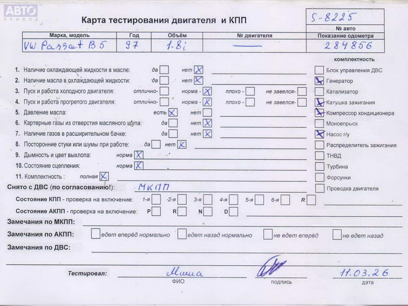 | Марка / Модель / Год: | Volkswagen Passat B5 1997 |