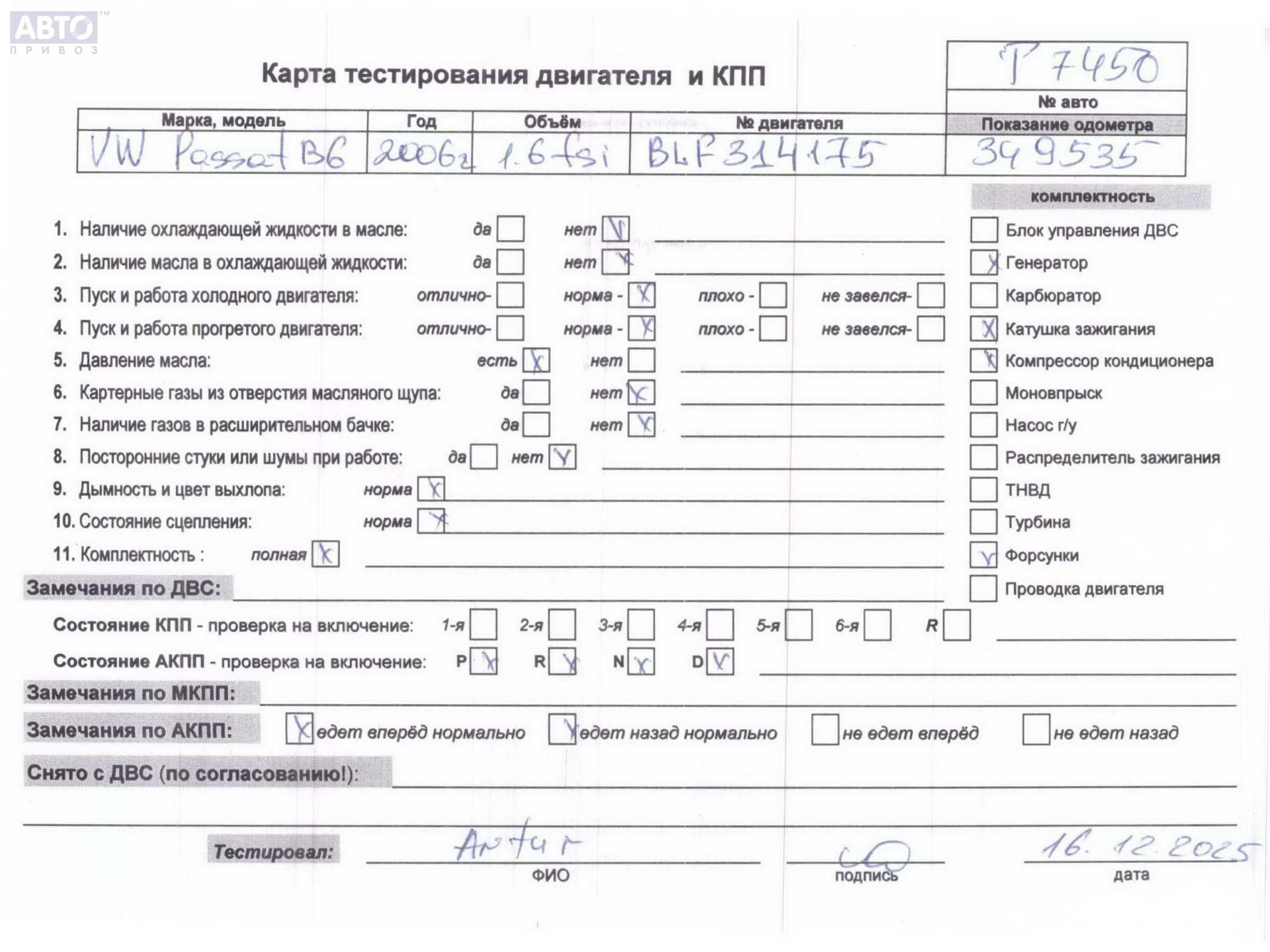 | Марка / Модель / Год: | Volkswagen Passat B6 2006 |