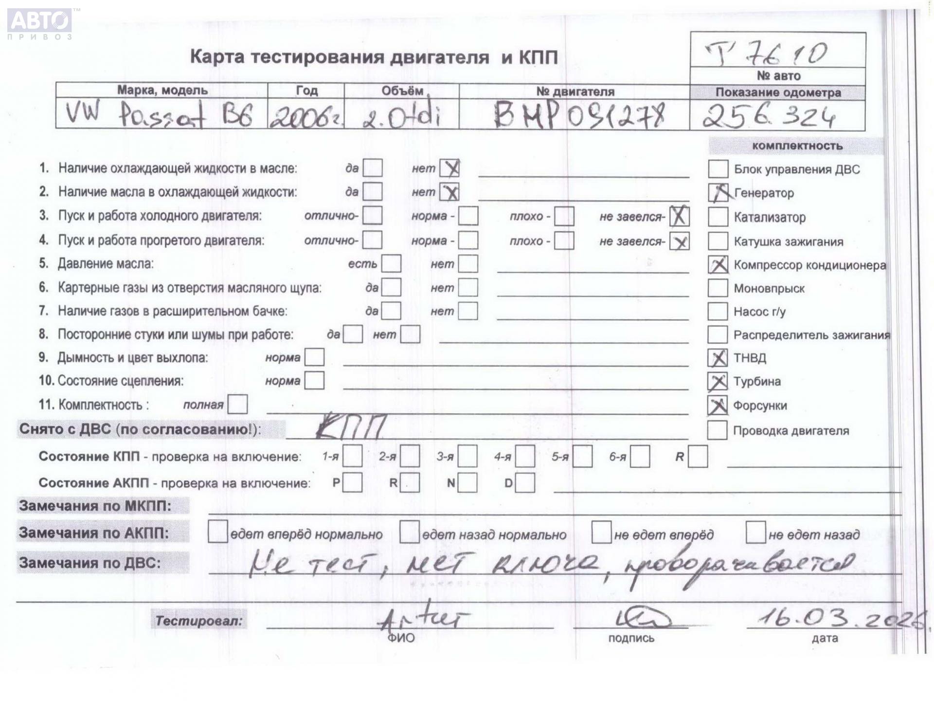 | Марка / Модель / Год: | Volkswagen Passat B6 2006 |