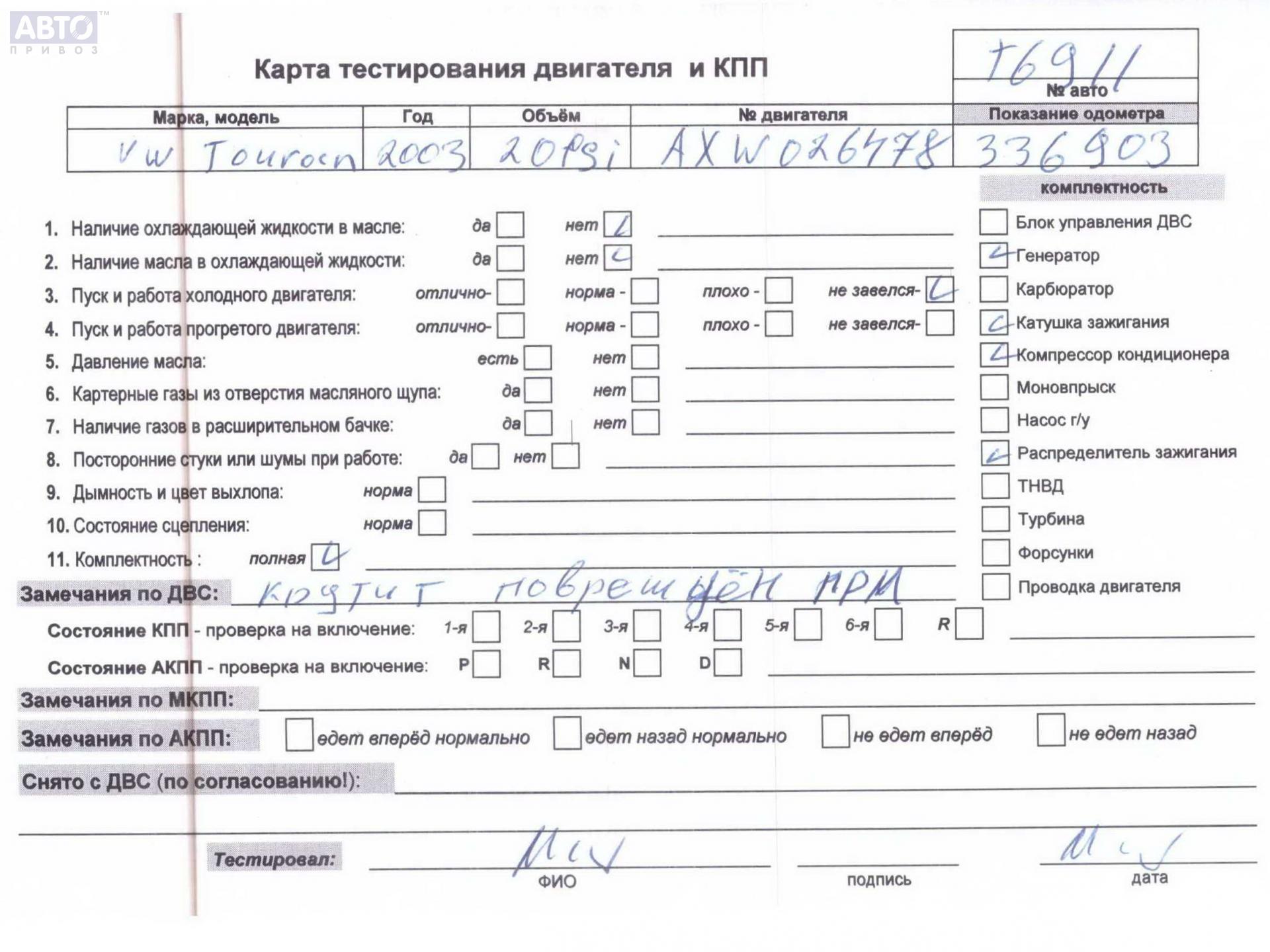 Хотите купить контракнтую запчасть Двигатель (ДВС) на разборку? У нас в наличии есть оригинальные автозапчасти бывшие в употреблении, хорошего качества по приемлемым ценам. Практически на все наши запчасти мы даем срок проверки (от 14 до 30 дней) (https://www.autopriwos.ru/return.html). На сайте Вы можете выбрать б/у запчасть по оригинальному номеру, моделе, марке автомобиля и маркировке. Каждая запчасть Двигатель (ДВС) на разборку для Volkswagen Touran, 2004, купить б/у (54808707) проходит внешний осмотр на выявление неработоспособности для успешного решения проблемы вашего автомобиля.