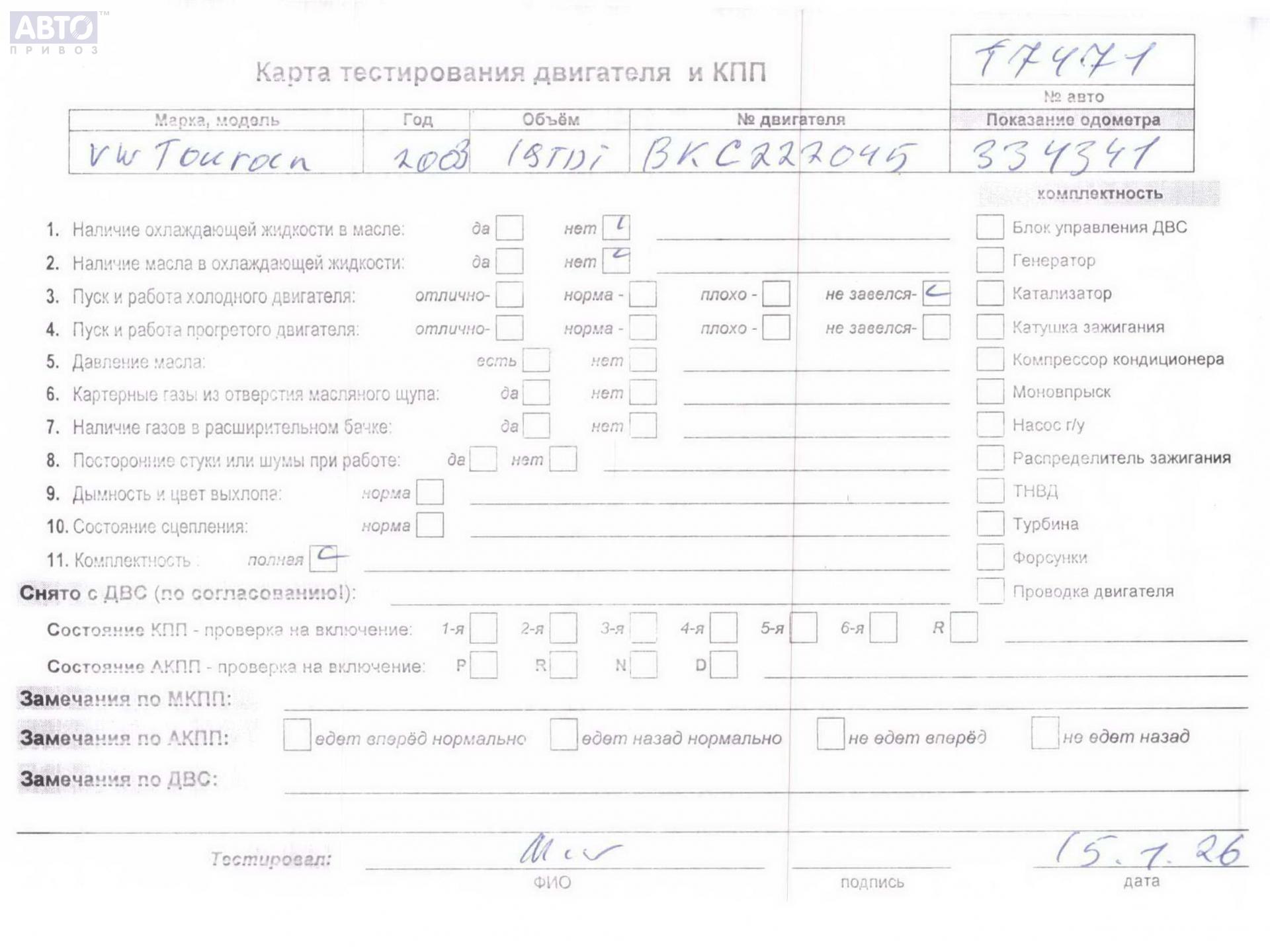 Хотите купить контракнтую запчасть Двигатель (ДВС)? У нас в наличии есть оригинальные автозапчасти бывшие в употреблении, хорошего качества по приемлемым ценам. Практически на все наши запчасти мы даем срок проверки (от 14 до 30 дней) (https://www.autopriwos.ru/return.html). На сайте Вы можете выбрать б/у запчасть по оригинальному номеру, моделе, марке автомобиля и маркировке. Каждая запчасть Двигатель (ДВС) для Volkswagen Touran, 2004, купить б/у (54940400) проходит внешний осмотр на выявление неработоспособности для успешного решения проблемы вашего автомобиля.