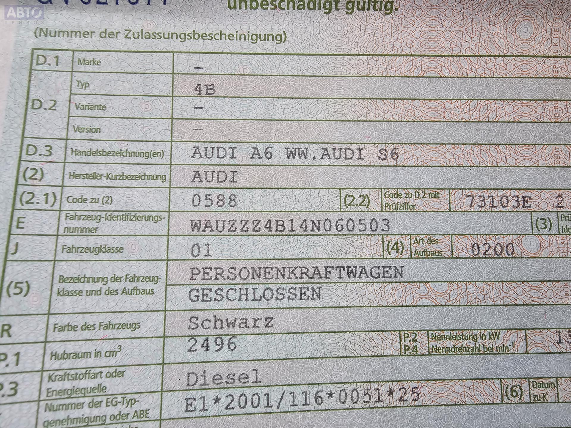 КПП автоматическая (АКПП); Audi; A6 C5 (1997-2005); 2003; 2.5л; Дизель; TD; Авт.; Универсал; чёрный; GJT; VIN WAUZZZ4B24N058839;
