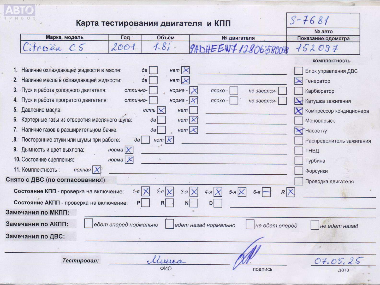 | Марка / Модель / Год: | Citroen C5 (2001-2008) 2001 |