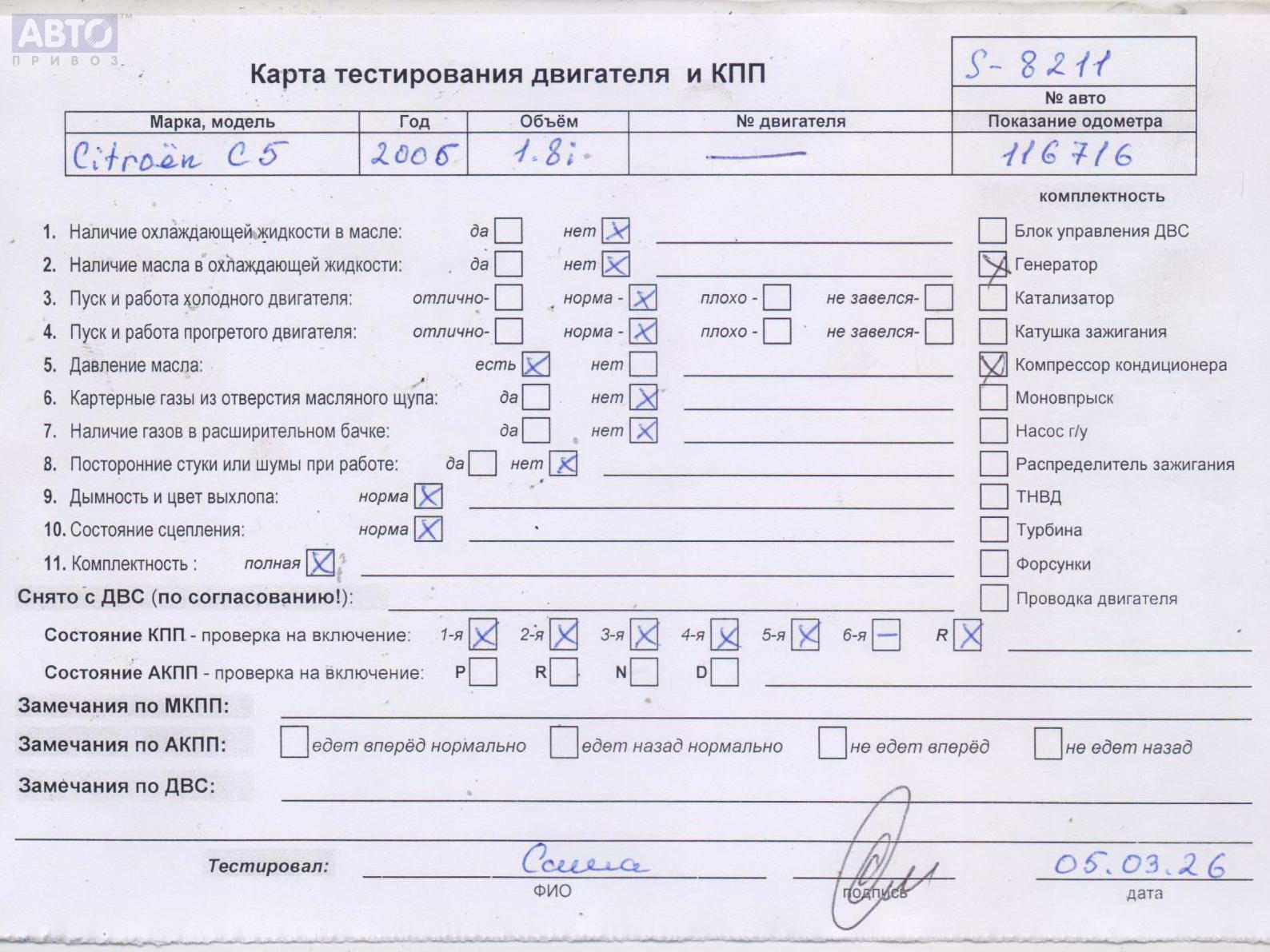 | Автомобиль / VIN: | S8211 VF7RC6FYC76736218 |