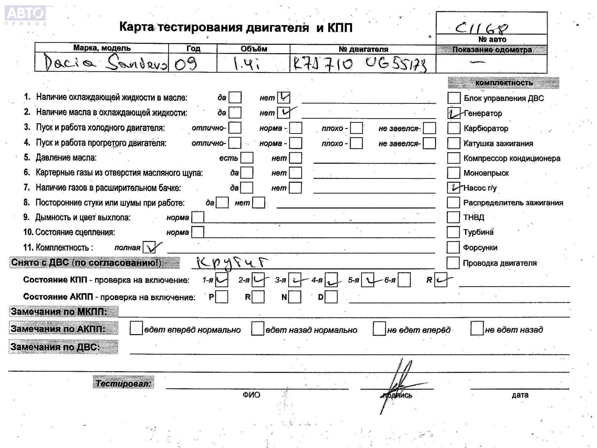| Марка / Модель / Год: | Dacia (Renault) Sandero I (2008-2012) 2009 |