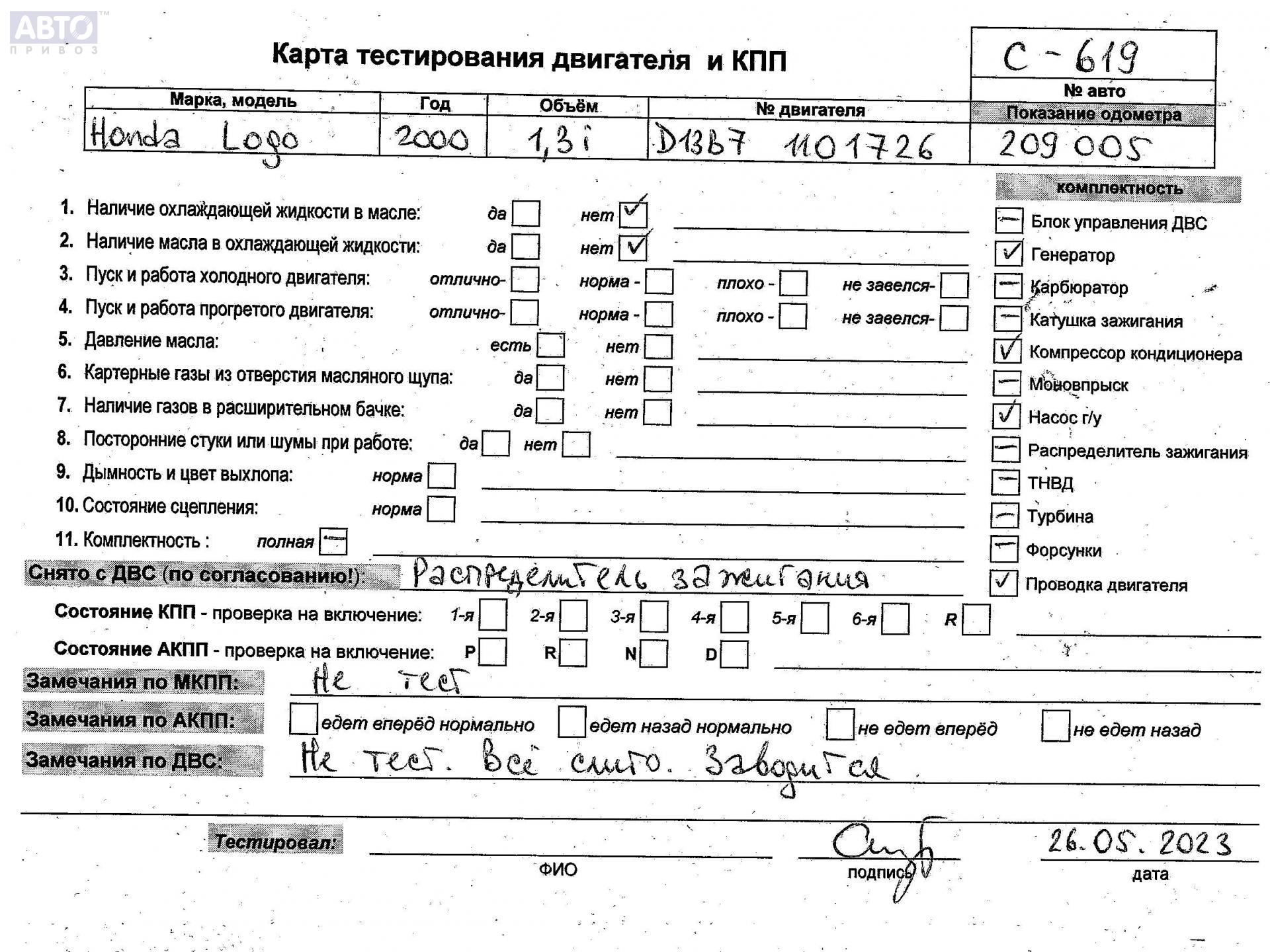 | Марка / Модель / Год: | Honda Logo 2000 |