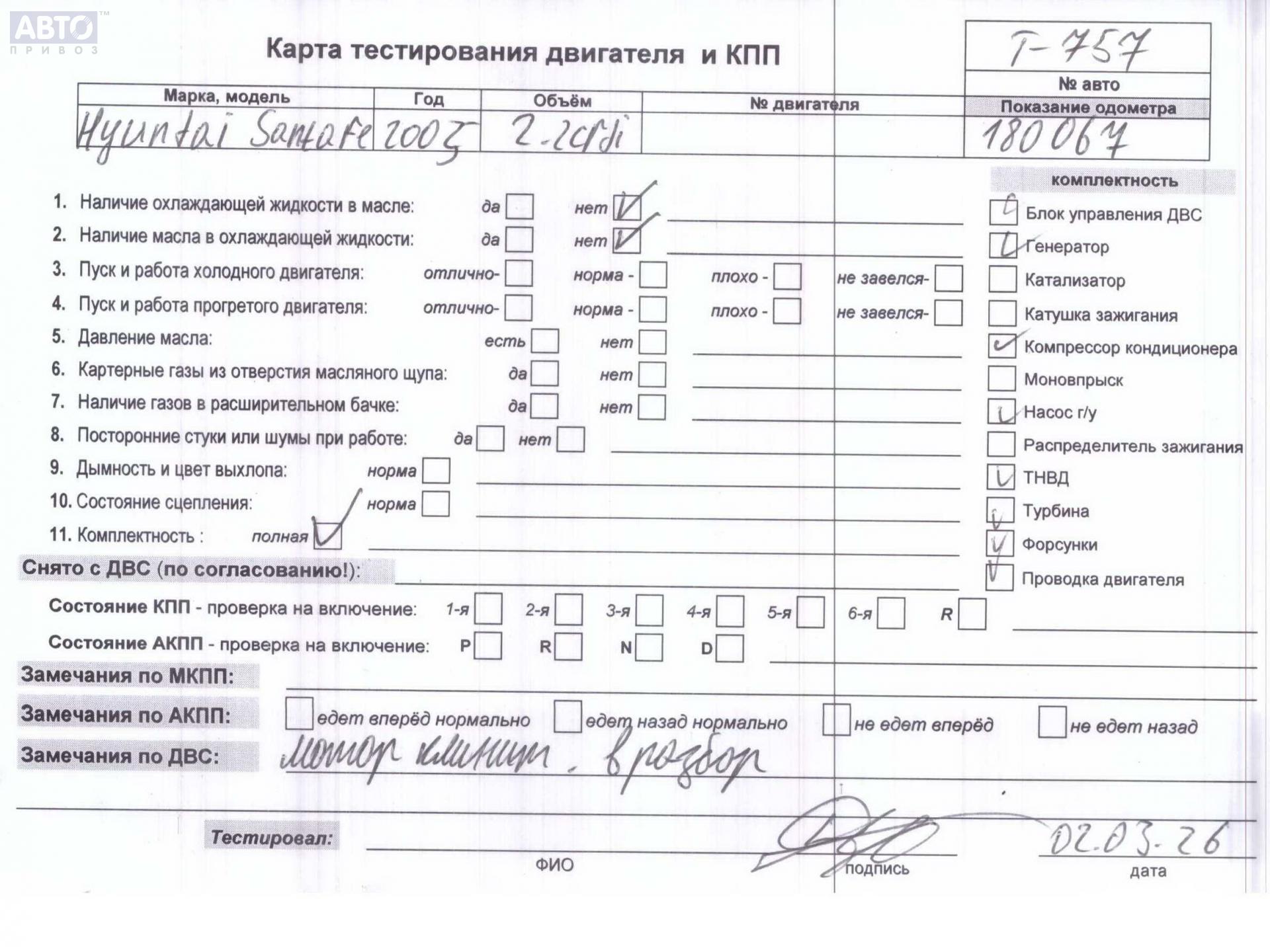 | Марка / Модель / Год: | Hyundai Santa Fe (2006-2012) 2006 |