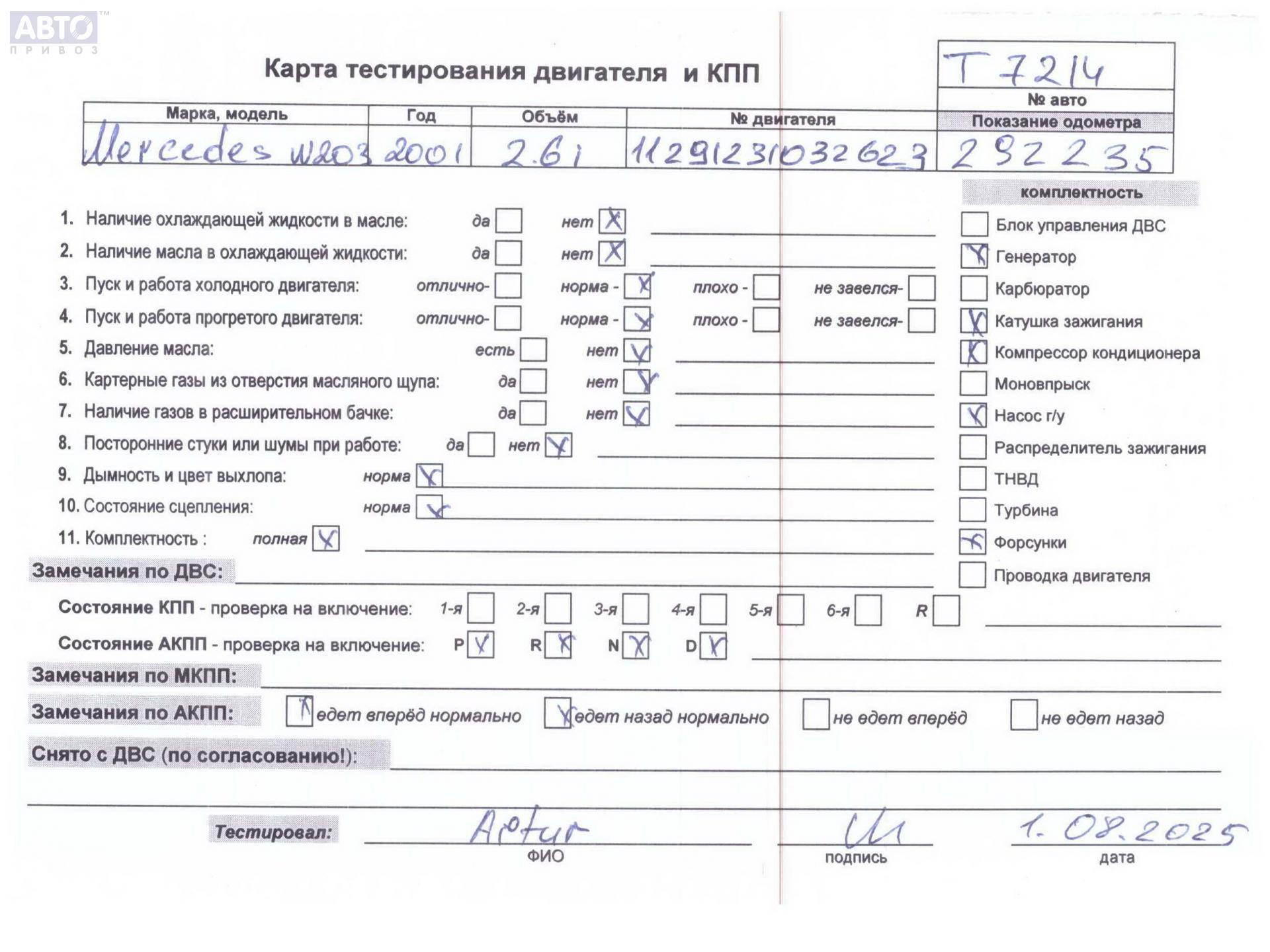 | Автомобиль / VIN: | T7214 WDB2032611F125500 |