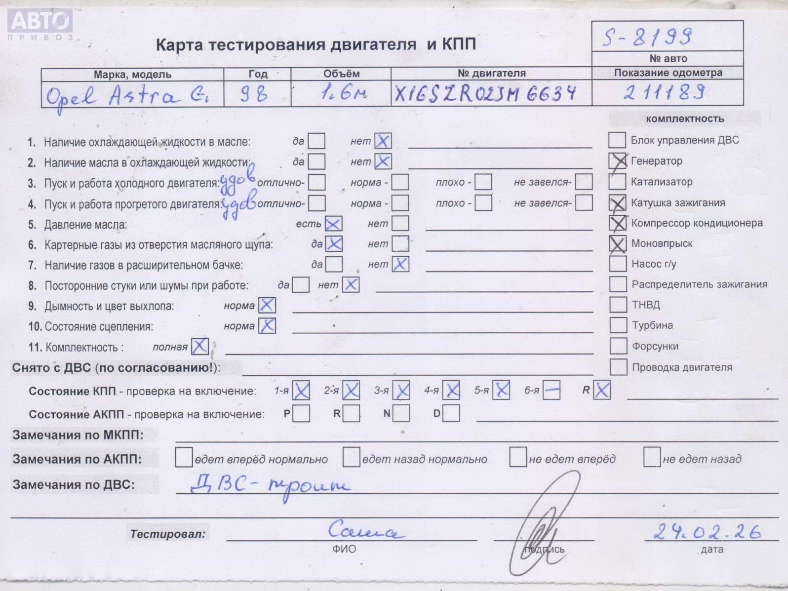 Хотите купить контракнтую запчасть КПП 5-ст. механическая? У нас в наличии есть оригинальные автозапчасти бывшие в употреблении, хорошего качества по приемлемым ценам. Практически на все наши запчасти мы даем срок проверки (от 14 до 30 дней) (https://www.autopriwos.ru/return.html). На сайте Вы можете выбрать б/у запчасть по оригинальному номеру, моделе, марке автомобиля и маркировке. Каждая запчасть КПП 5-ст. механическая для Opel Astra G, 1998, купить б/у (55110477) проходит внешний осмотр на выявление неработоспособности для успешного решения проблемы вашего автомобиля.