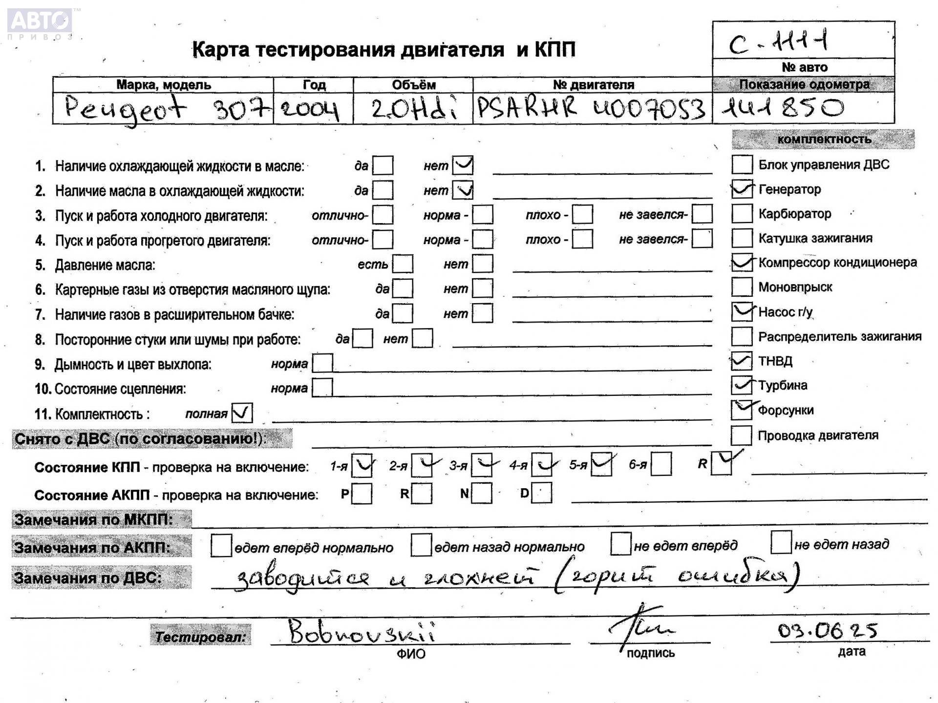 | Марка / Модель / Год: | Peugeot 307 2004 |