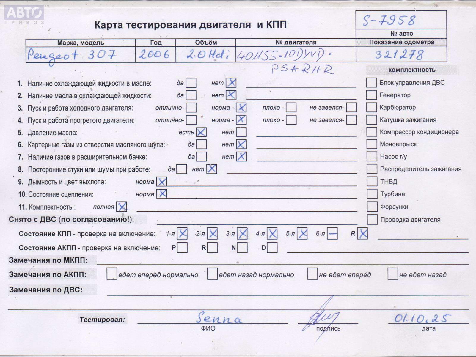 | Марка / Модель / Год: | Peugeot 307 2006 |